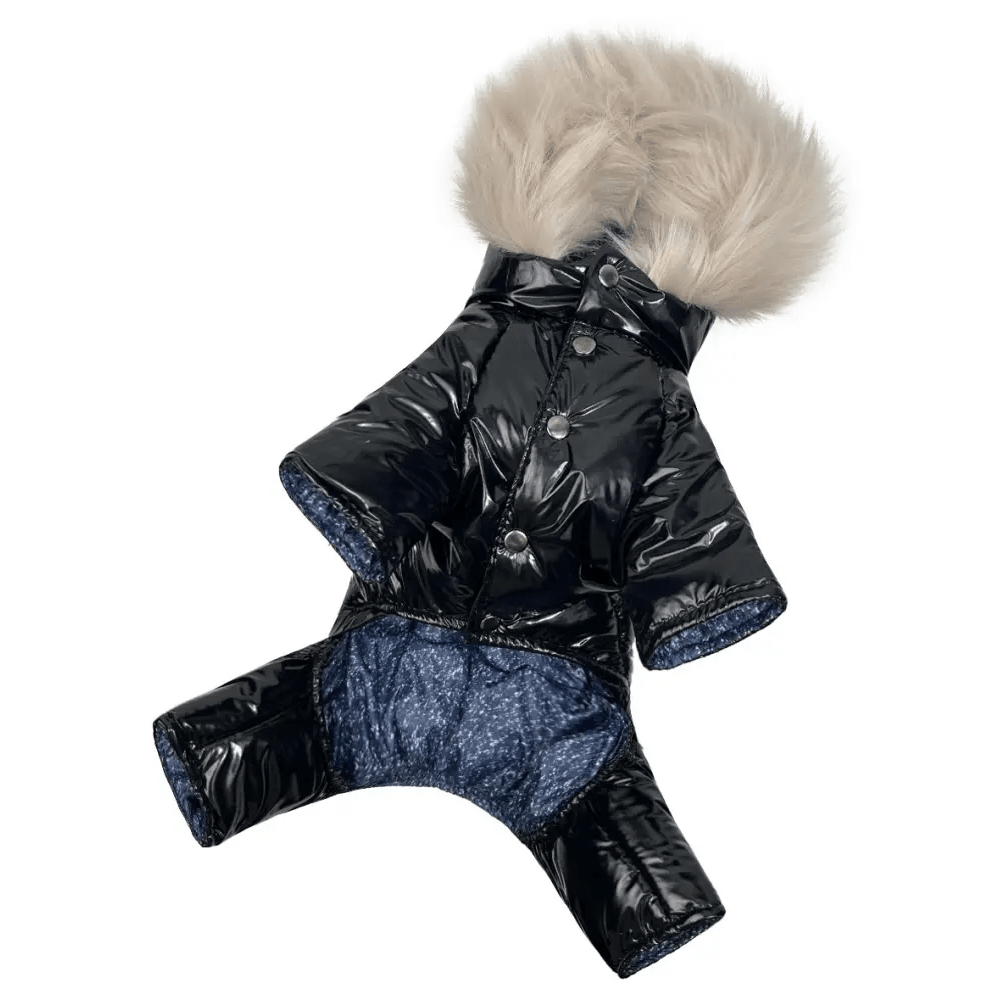 Для удобства использования комбинезон имеет отверстие для поводка на шее и застегивается кнопками на животе, что облегчает процесс одевания. Модель подходит для собак любого пола, так как она унисекс.