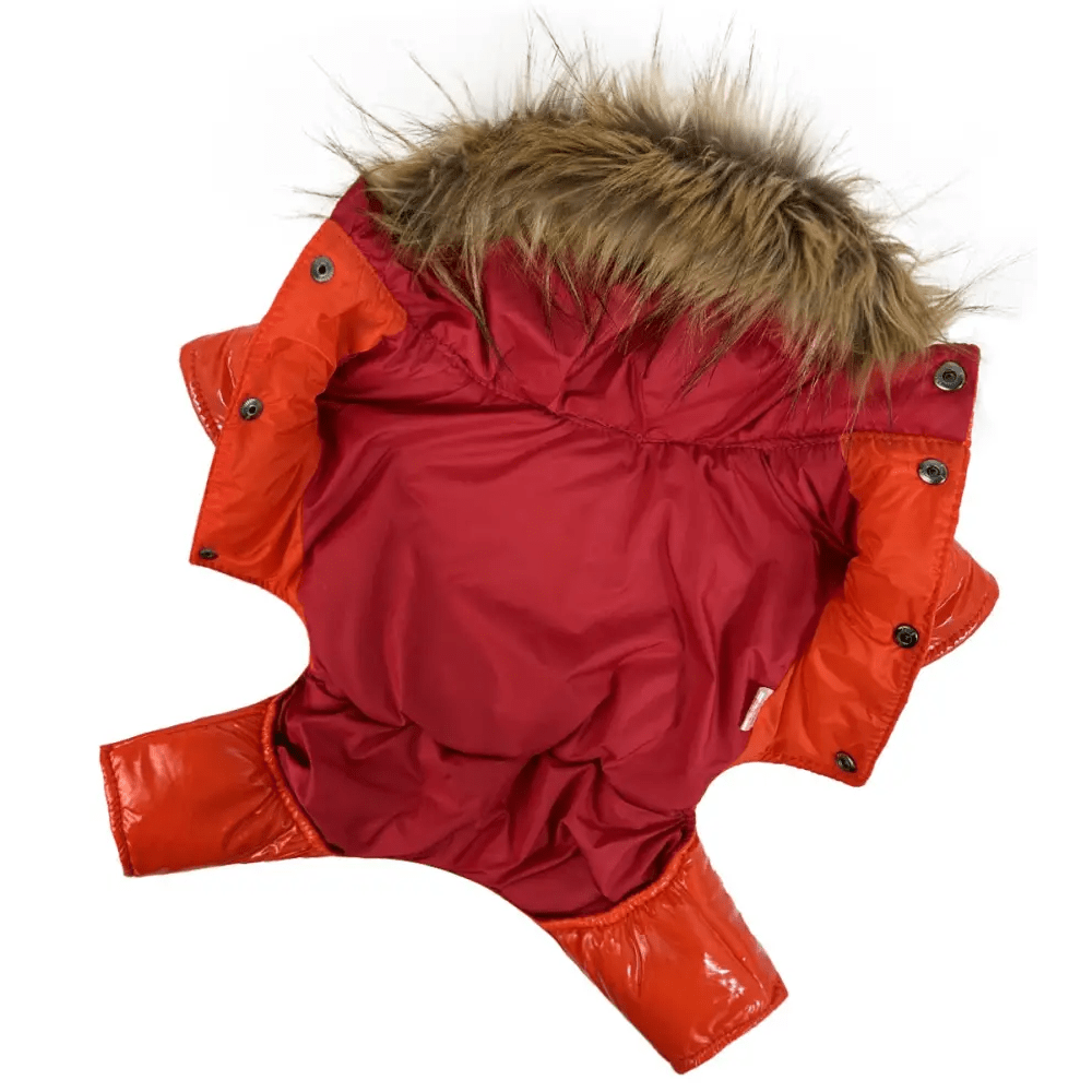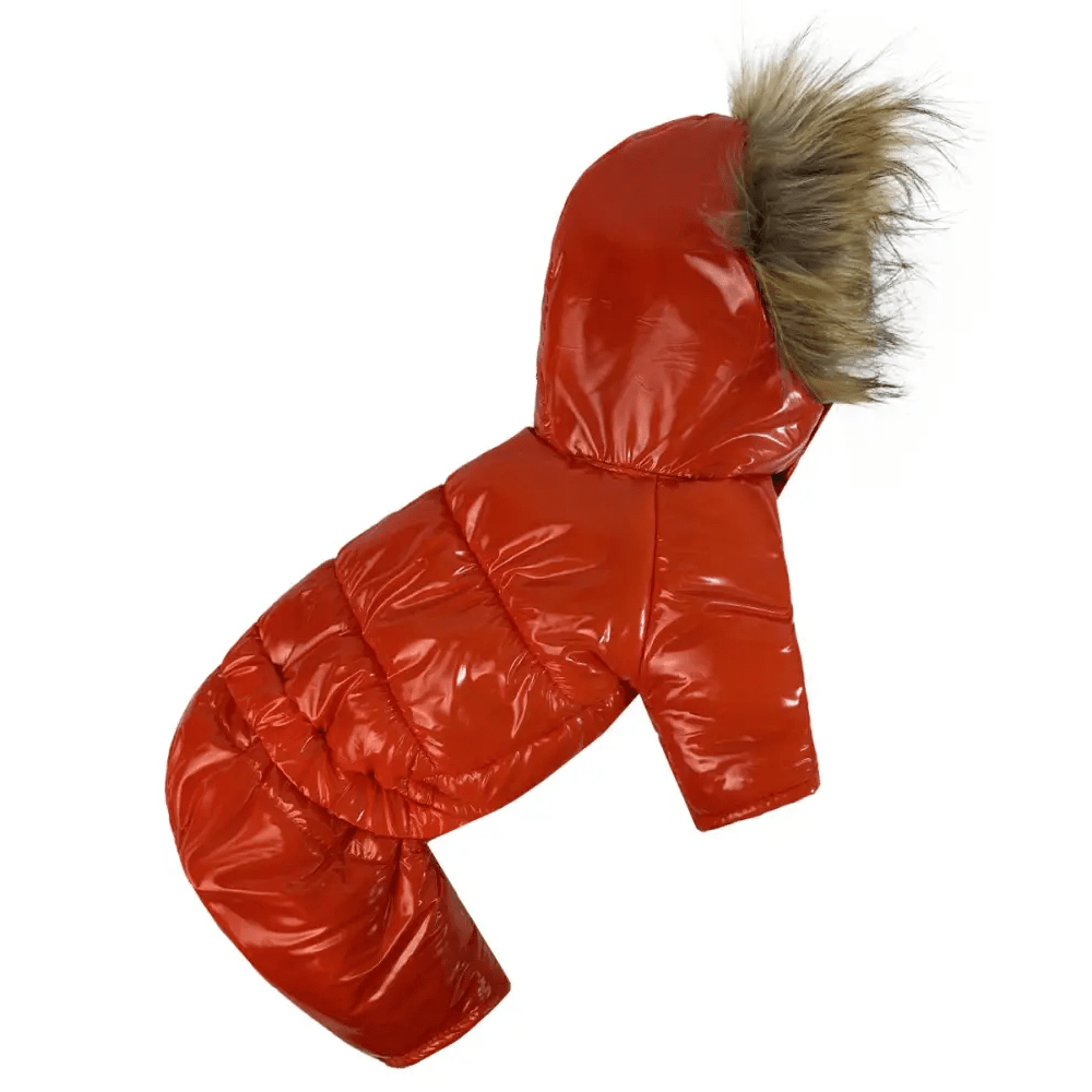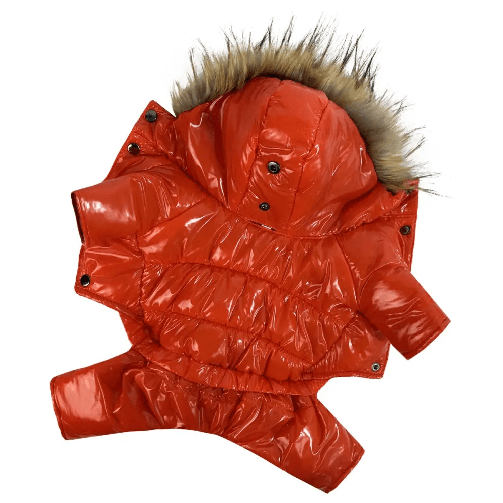 Зимний лакированный комбинезон для собак A-81 оранжевого цвета – это стильное и практичное решение для холодного времени года. Комбинезон выполнен из водоотталкивающей плащевки, которая обеспечивает надёжную защиту от влаги, а синтепоновый наполнитель гарантирует тепло даже в морозную погоду.