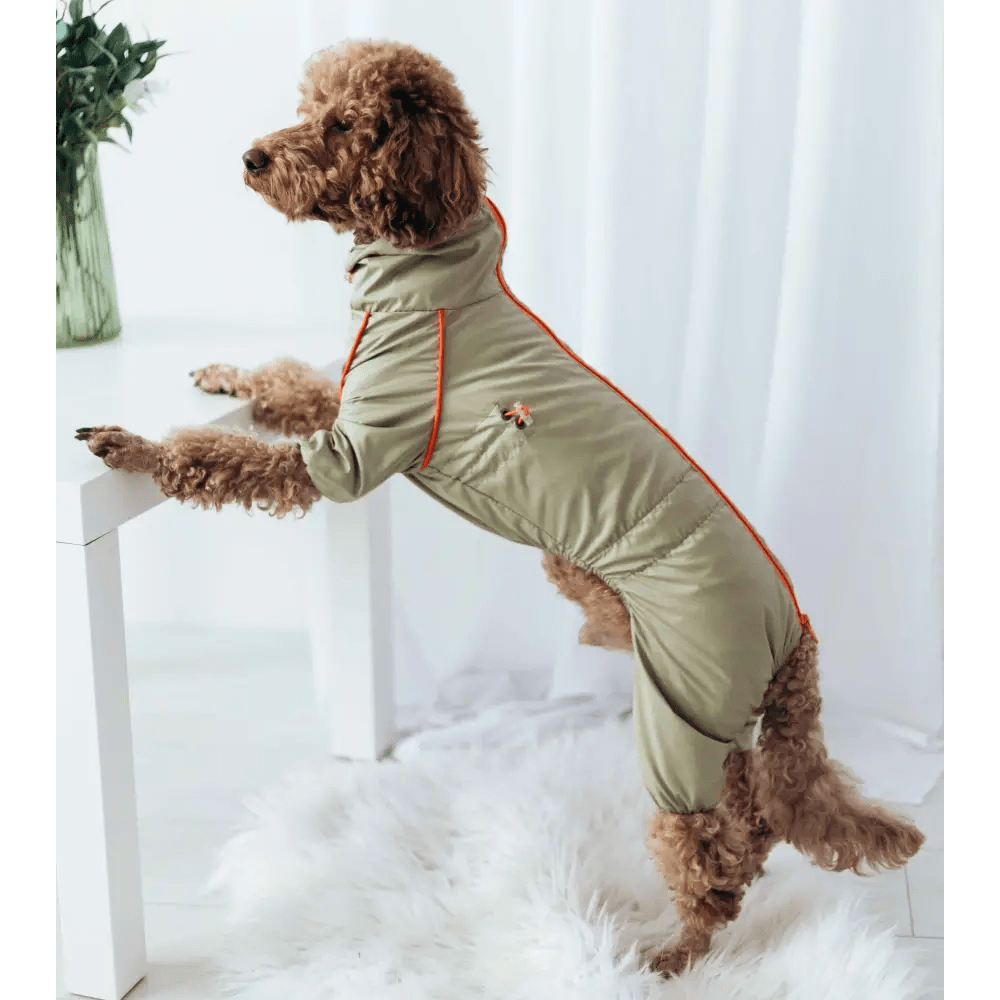 Дождевик для собак Dogs Bomba MT-28 оливкового цвета разработан специально под анатомию такс. Изделие выполнено из качественной плащевой ткани с водоотталкивающей подкладкой, что гарантирует защиту питомца от намокания и грязи. Модель станет отличным решением для выгула в дождливую погоду весной и осенью. Это практичная одежда для собак мелких пород, которая сохраняет чистоту шерсти и комфорт животного.