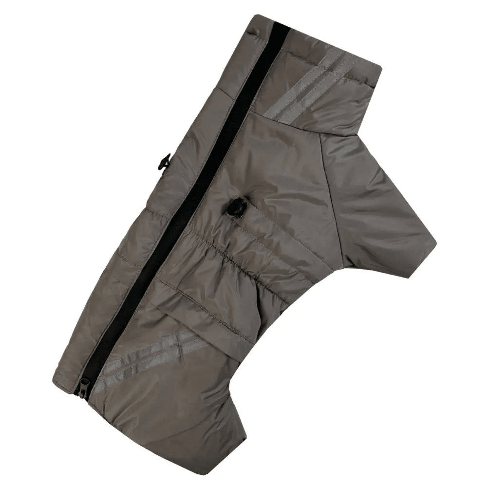 Застёжка на молнии по спине позволяет легко надевать комбинезон, а регуляторы обхвата на шее и груди дают возможность настроить идеальную посадку по размеру вашего питомца. Для повышения безопасности на штанах расположены светоотражающие ленты, которые обеспечивают лучшую видимость в тёмное время суток.