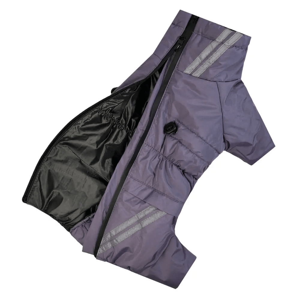 Сиреневый цвет придаёт комбинезону элегантный вид, подходящий для собак обоих полов, делая его отличным выбором для стильных и тёплых зимних прогулок.