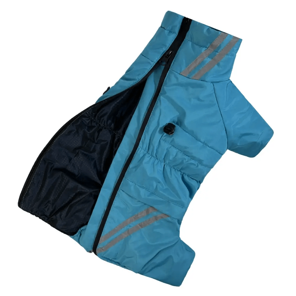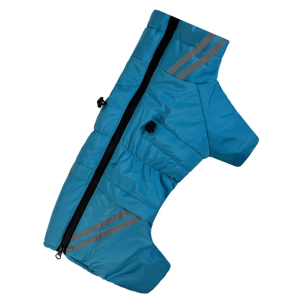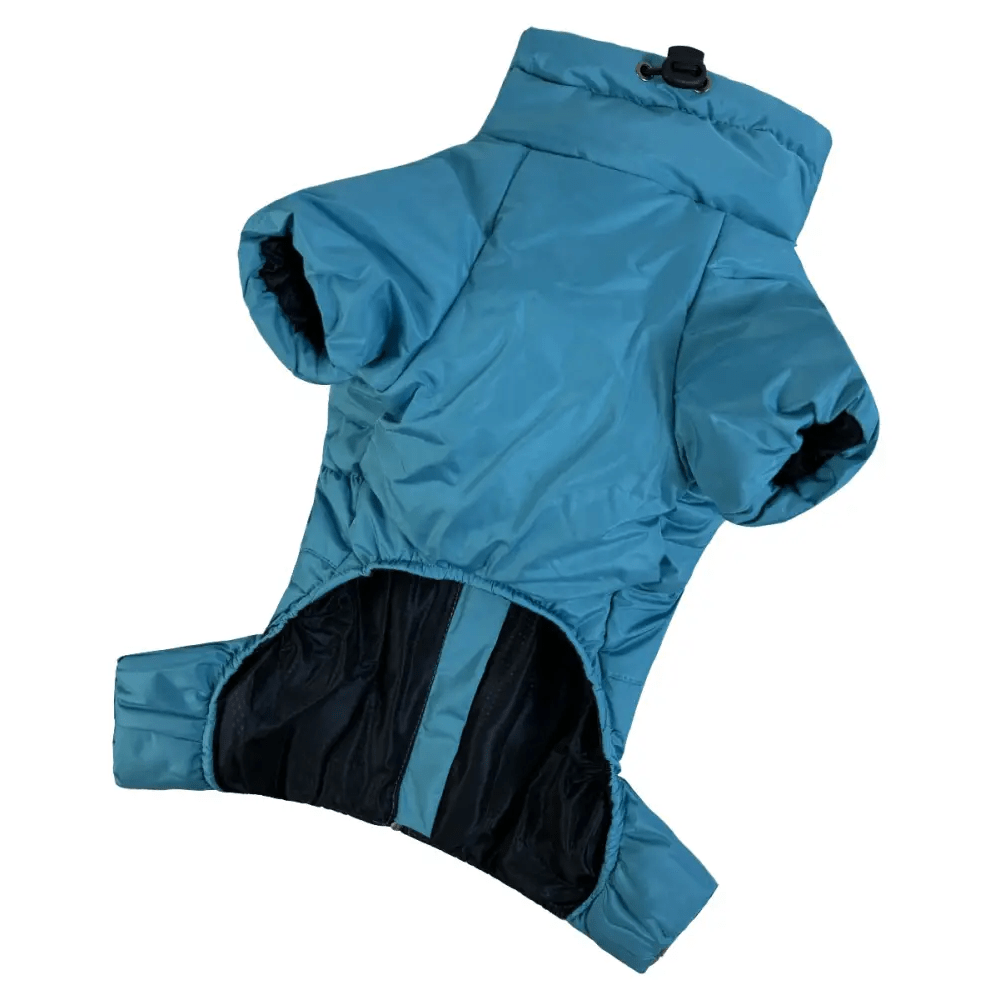 Стильный бирюзовый цвет придаёт комбинезону современный вид, а функциональный дизайн подходит для активных собак, которым важно сохранять тепло и сухость даже в холодное время года.