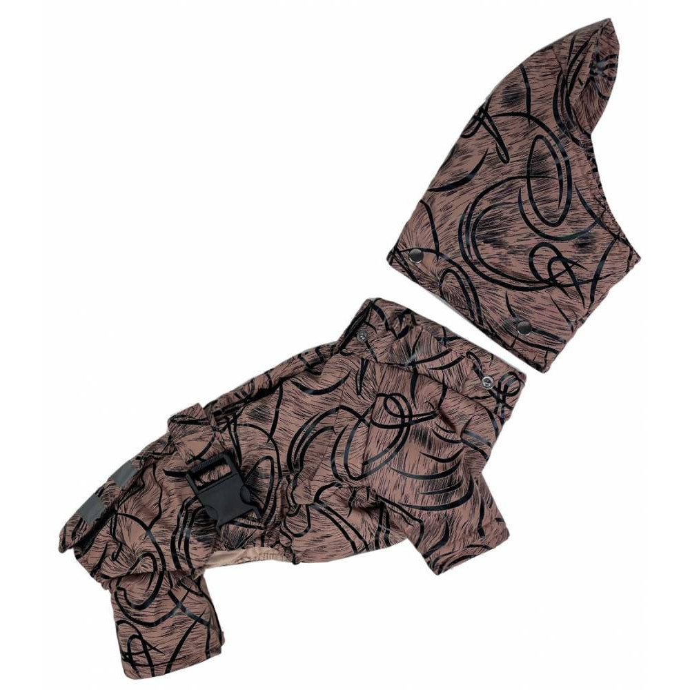 Комбинезон для собаки зима-осень с поясом коричневого цвета с узорами R-37