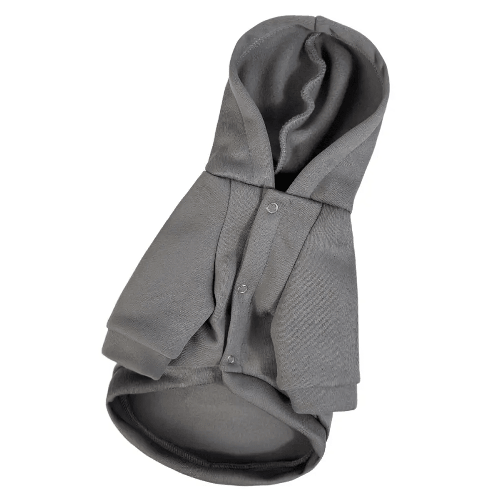 На спинке толстовки расположен оригинальный текстильный принт, который добавляет стильный акцент. Отверстие для поводка на шее упрощает использование шлейки, а застёжка на кнопках на животе делает процесс надевания быстрым и удобным.