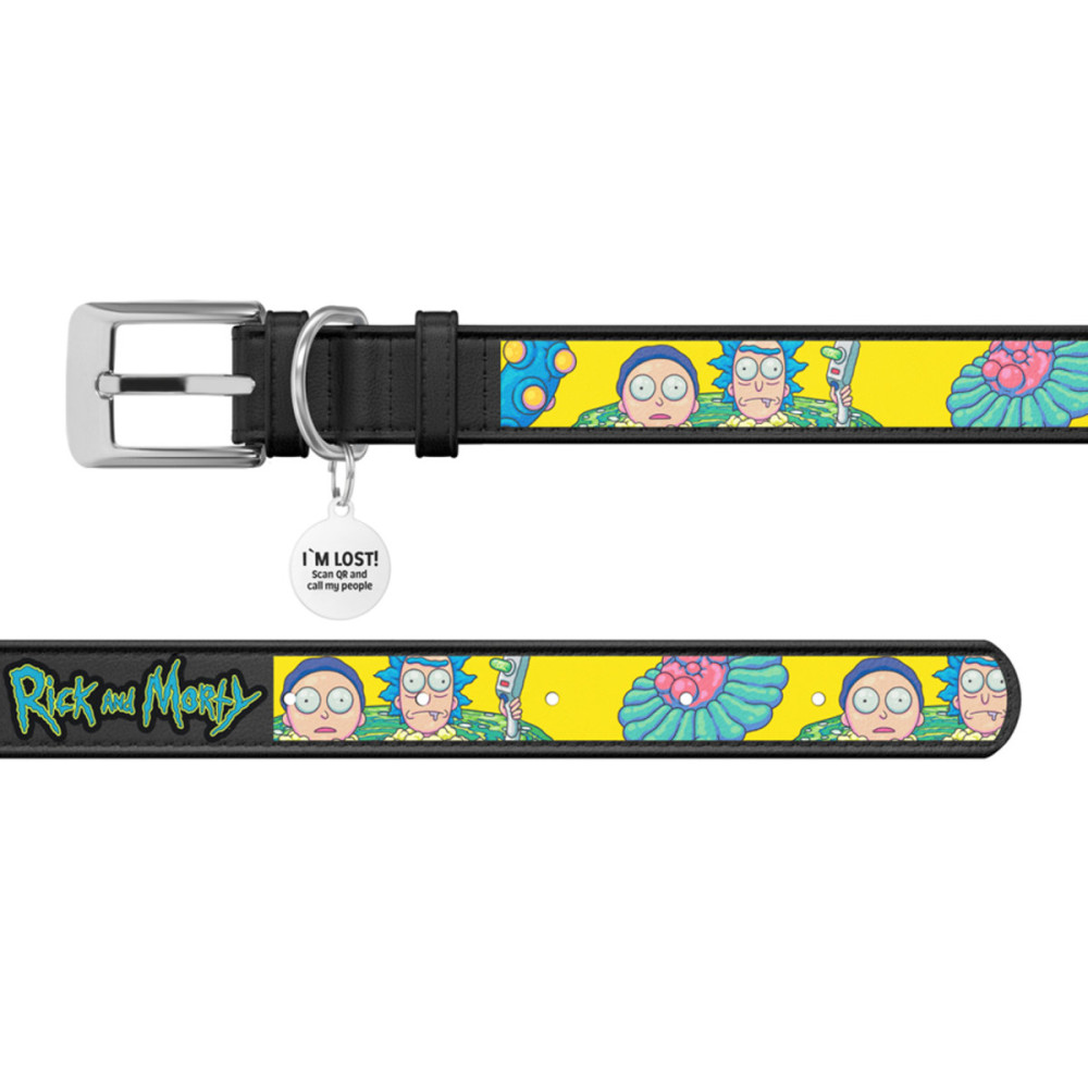 Особенности кожаного ошейника для собак WAUDOG Design с рисунком "Рик и Морти 1" из чёрной кожи: