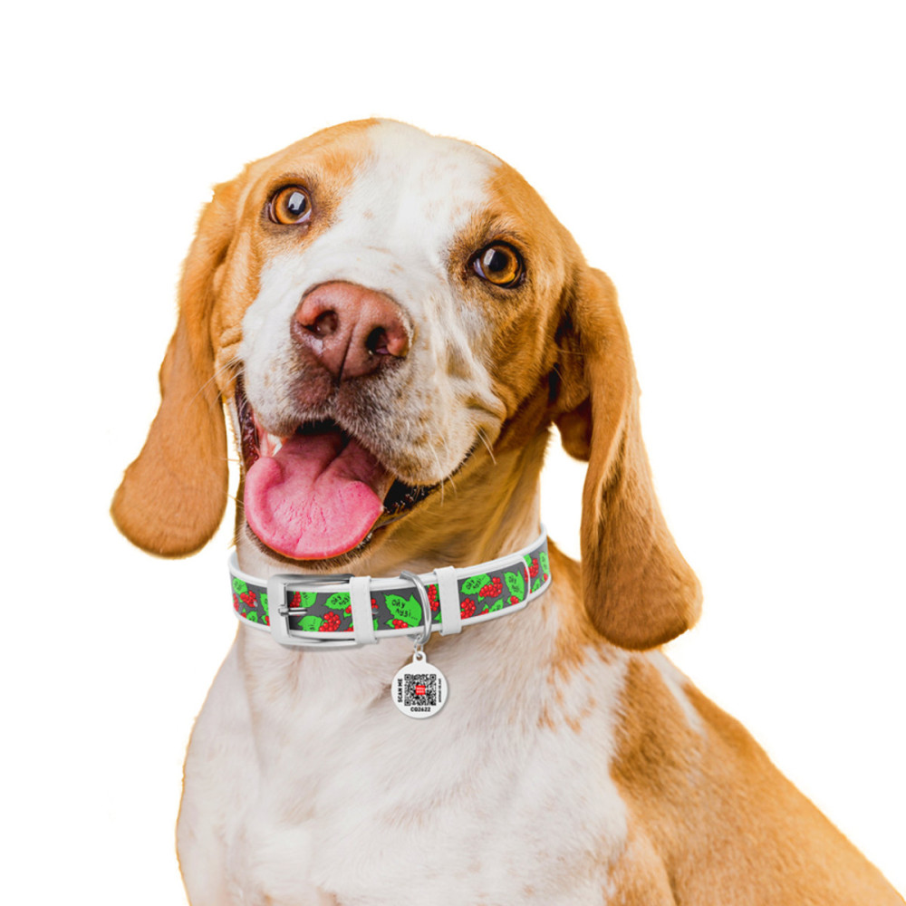 Кожаный ошейник для собак WAUDOG Design с рисунком "Калина", белая кожа – это идеальный выбор для собак любых пород.