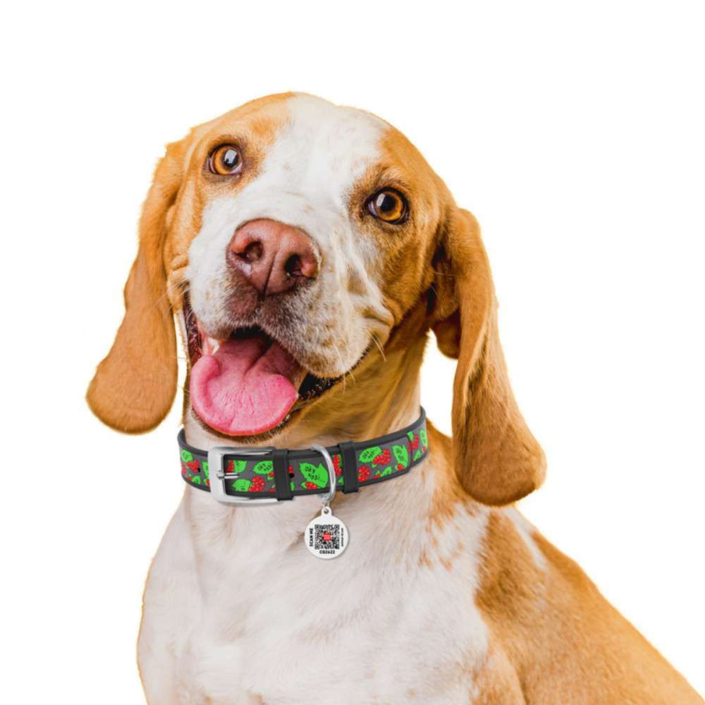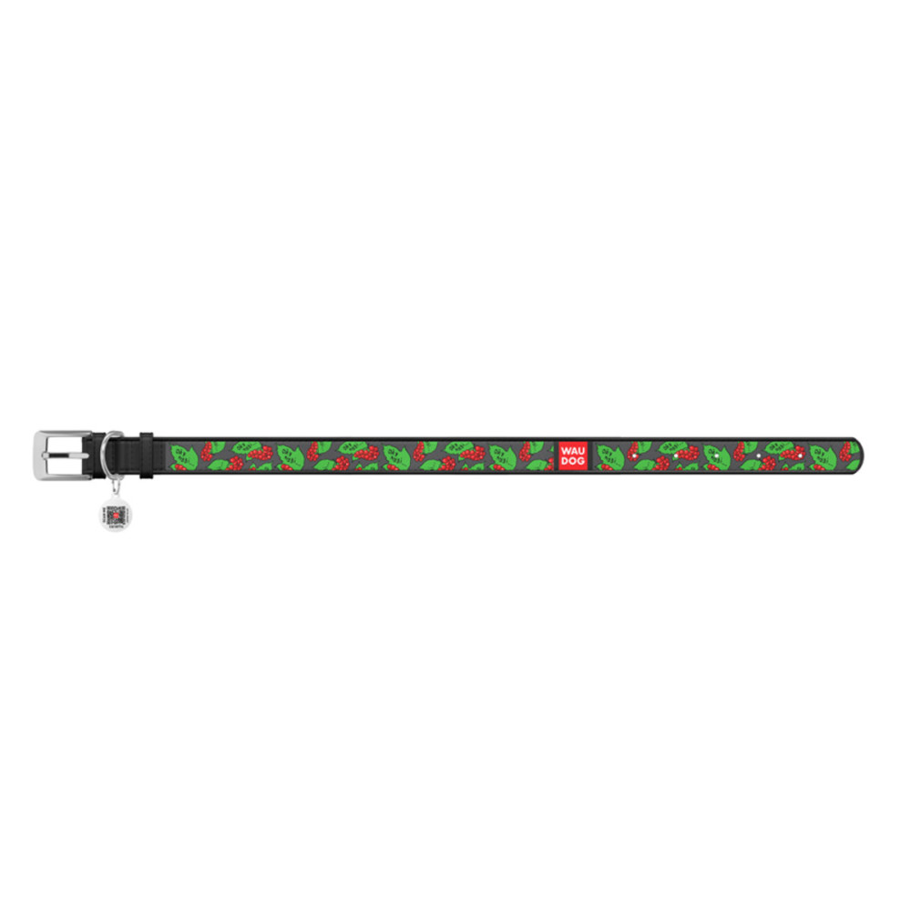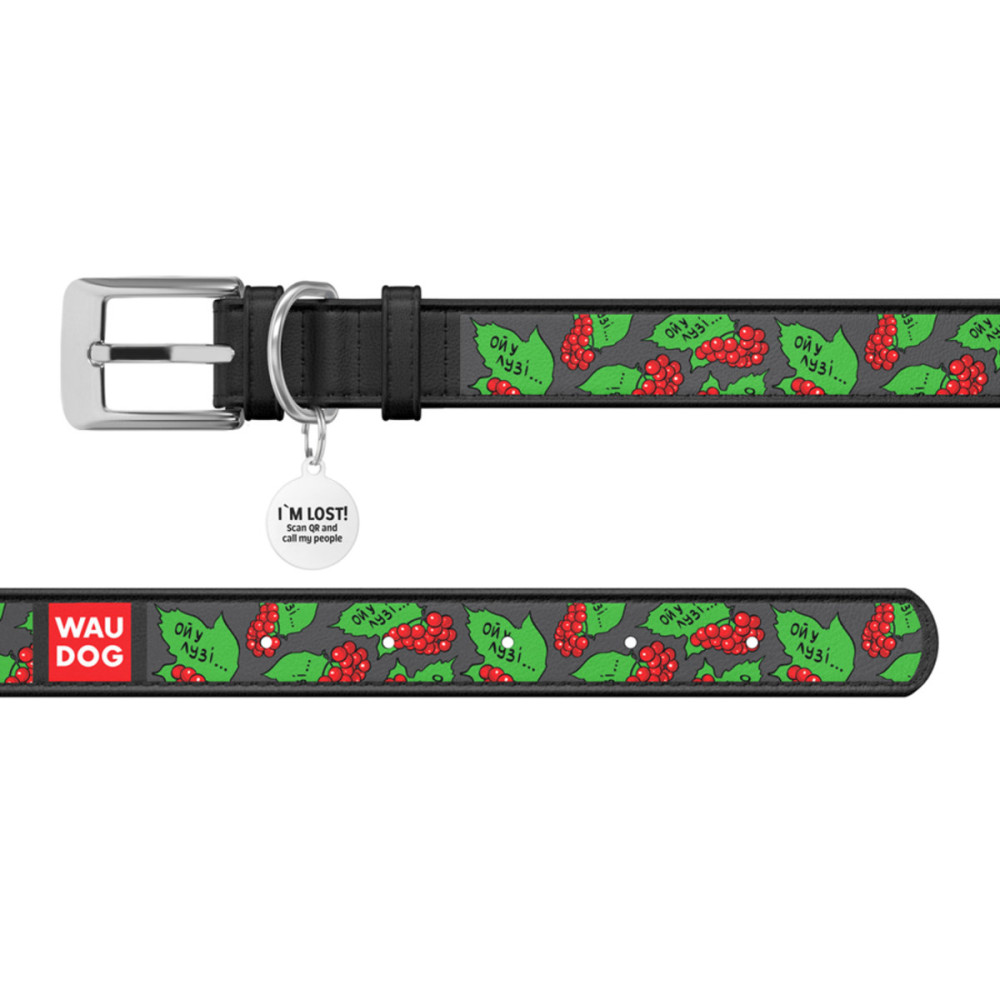 Кожаный ошейник для собак WAUDOG Design с рисунком "Калина", чёрная кожа – это идеальный выбор для собак любых пород.