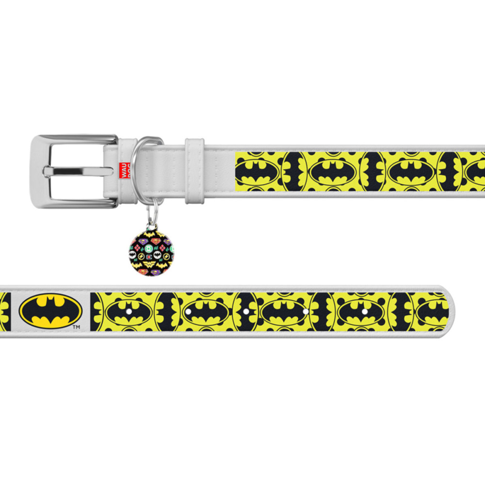 Ошейник для собак кожаный WAUDOG Design белого цвета, рисунок "Бэтмен 4"