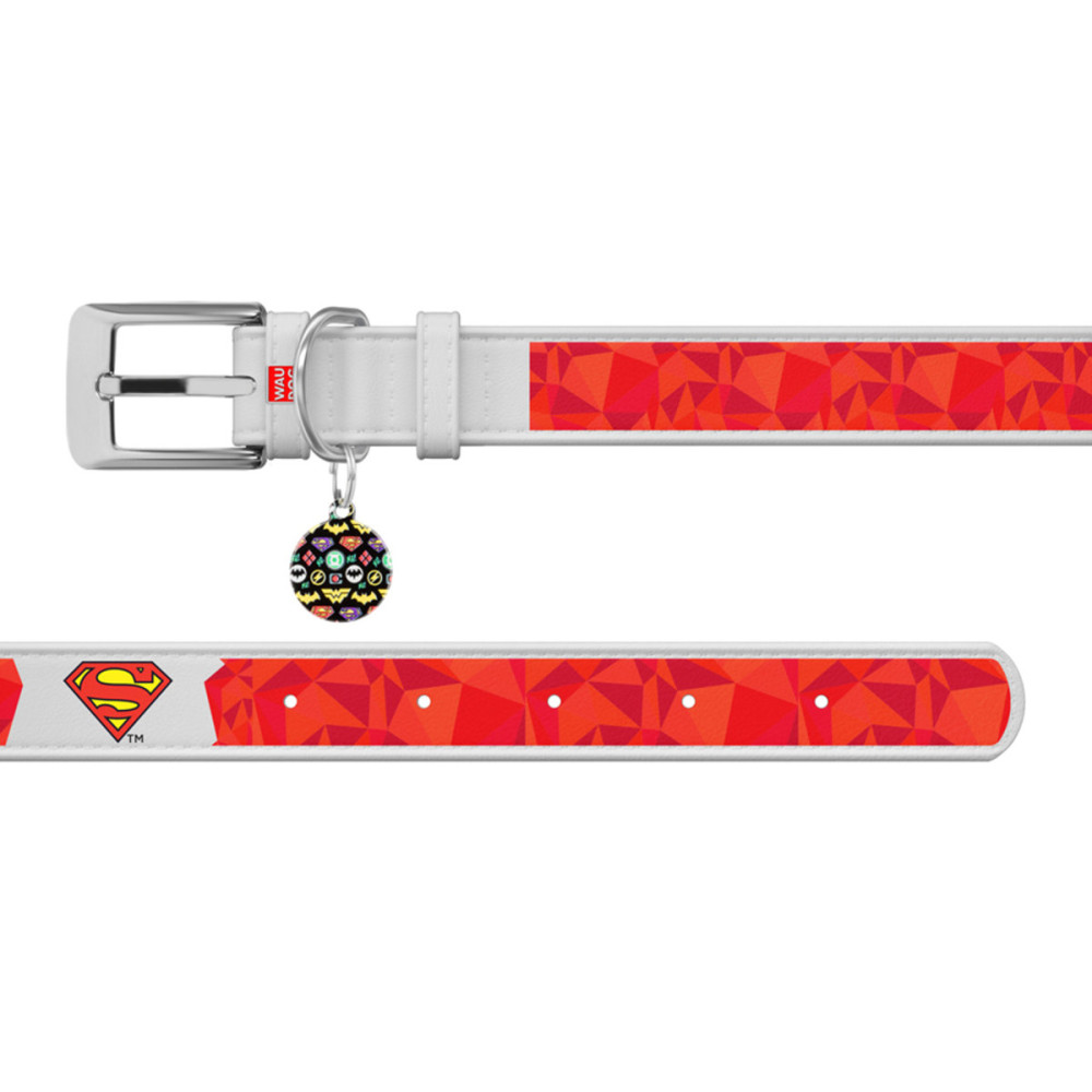 Особенности кожаного ошейника для собак WAUDOG Design белого цвета с рисунком "Супермен 1":