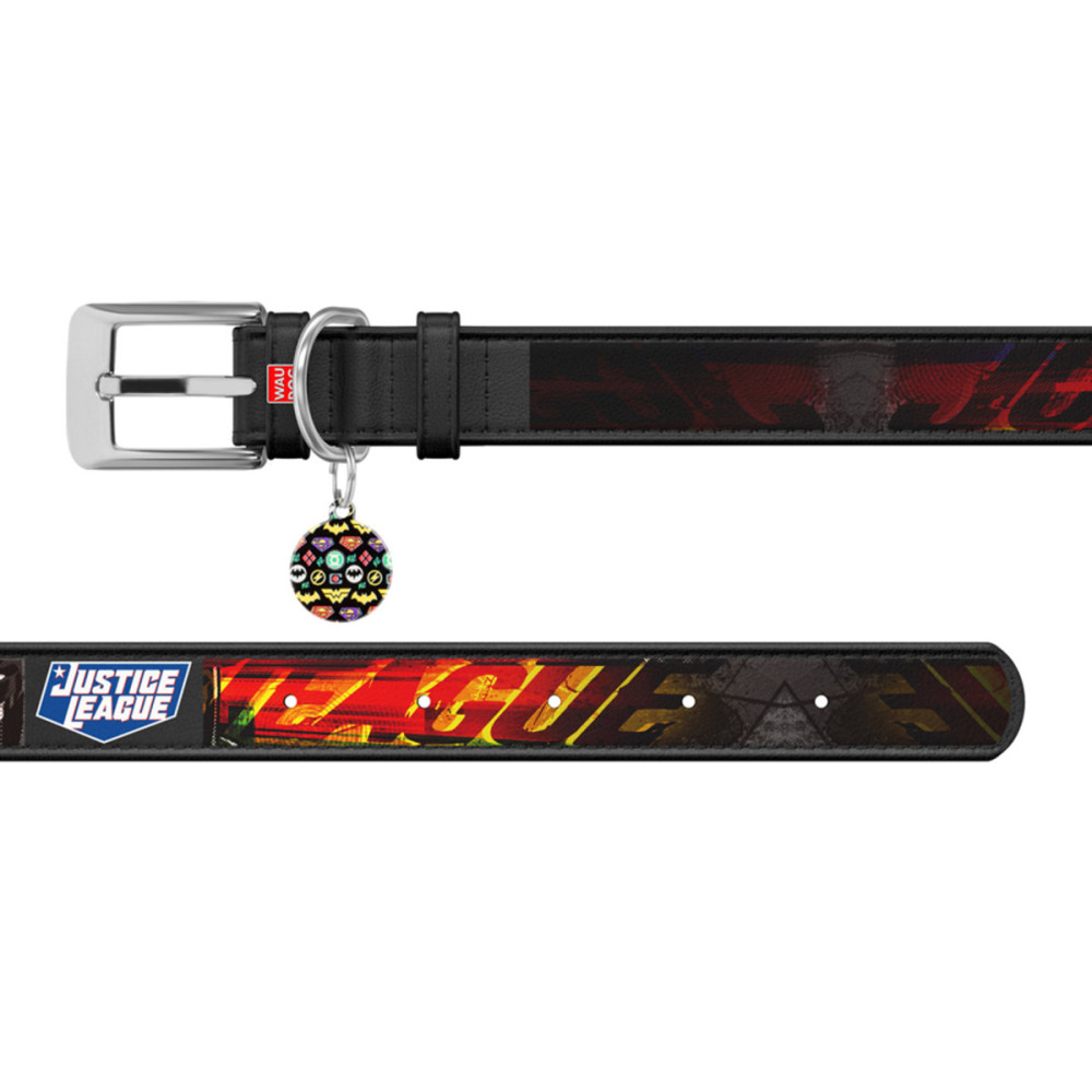 Особенности кожаного ошейника для собак WAUDOG Design чёрного цвета с рисунком "Лига Справедливости":