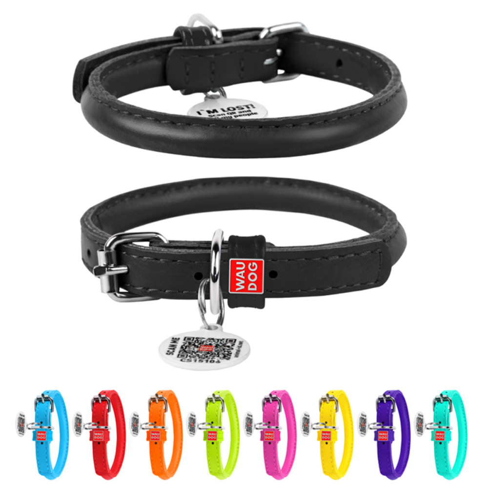 Ошейник для собак кожаный "WAUDOG Glamour" круглый черного цвета с QR паспортом