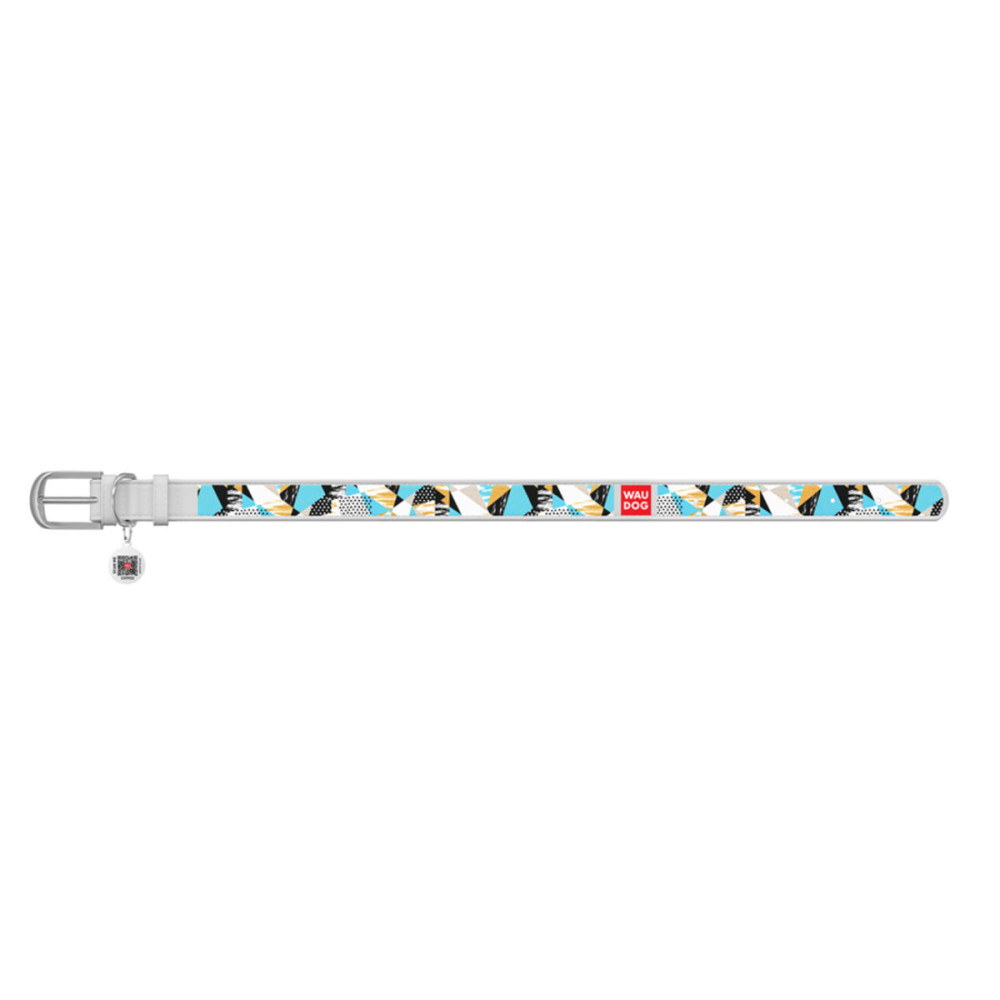 Кожаный белый ошейник для собак WAUDOG Design с рисунком "Абстракция" и металлической пряжкой – это идеальный выбор для собак любых пород.