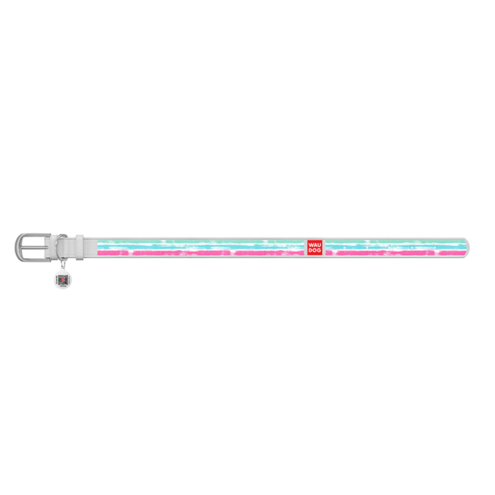 Кожаный белый ошейник для собак WAUDOG Design с рисунком "Акварельные полоски" и металлической пряжкой – это идеальный выбор для собак любых пород.