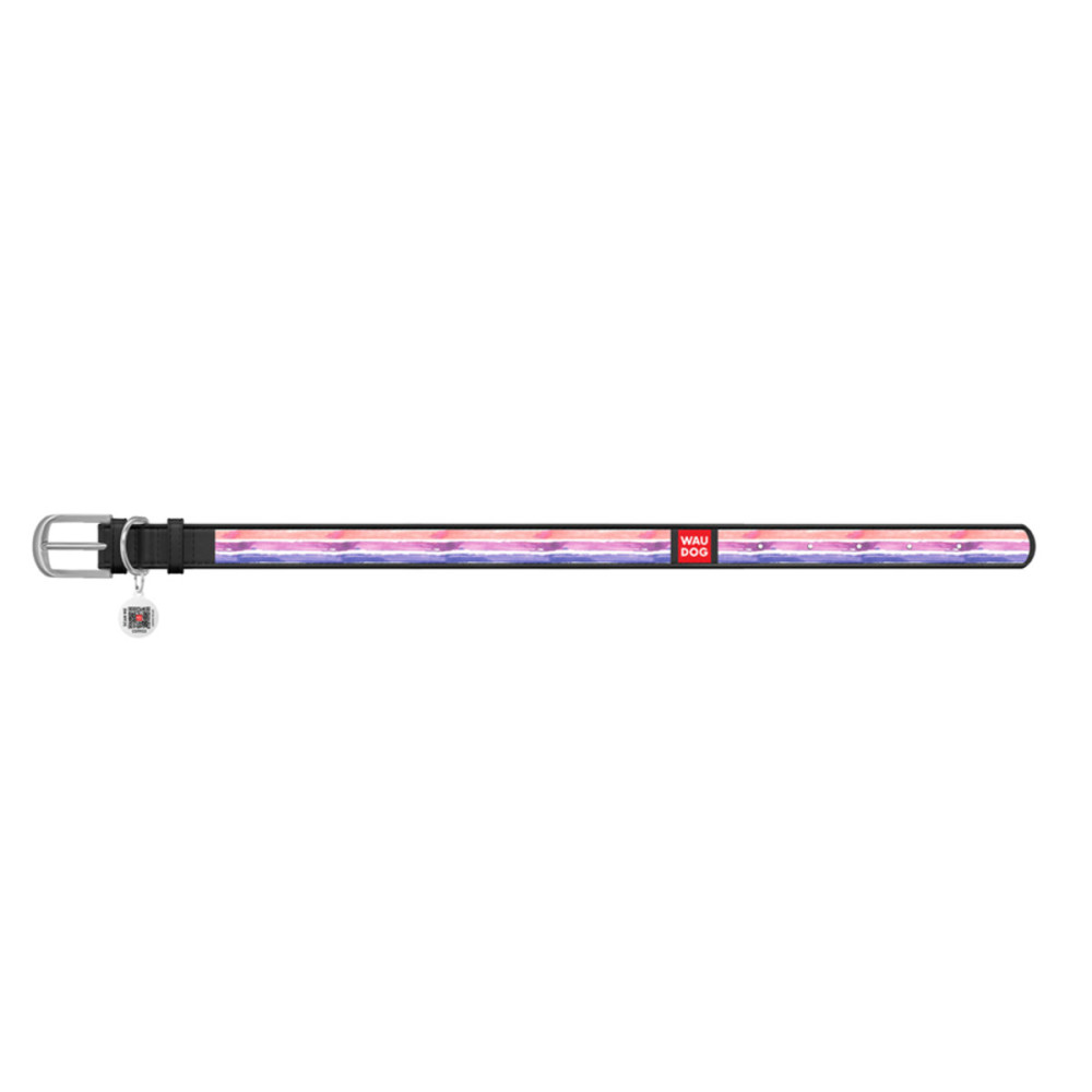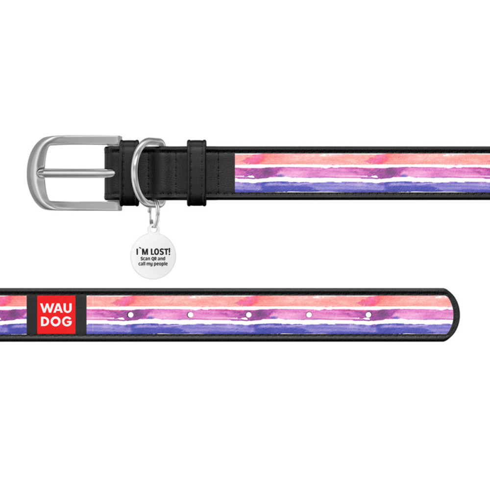 Кожаный чёрный ошейник для собак WAUDOG Design с рисунком "Акварельные полоски 2" и металлической пряжкой – это идеальный выбор для собак любых пород.