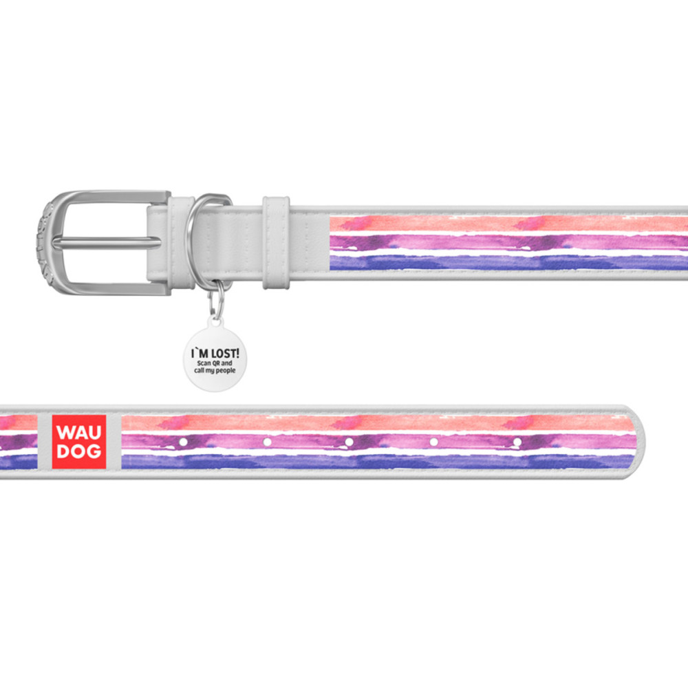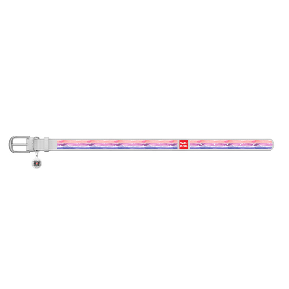 Кожаный белый ошейник для собак WAUDOG Design с рисунком "Акварельные полоски 2" и металлической пряжкой – это идеальный выбор для собак любых пород.