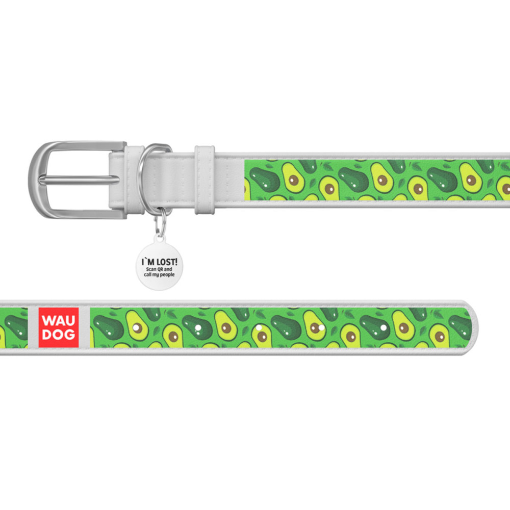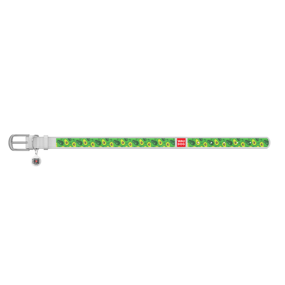 Кожаный белый ошейник для собак WAUDOG Design с рисунком "Авакадо" и металлической пряжкой – это идеальный выбор для собак любых пород.