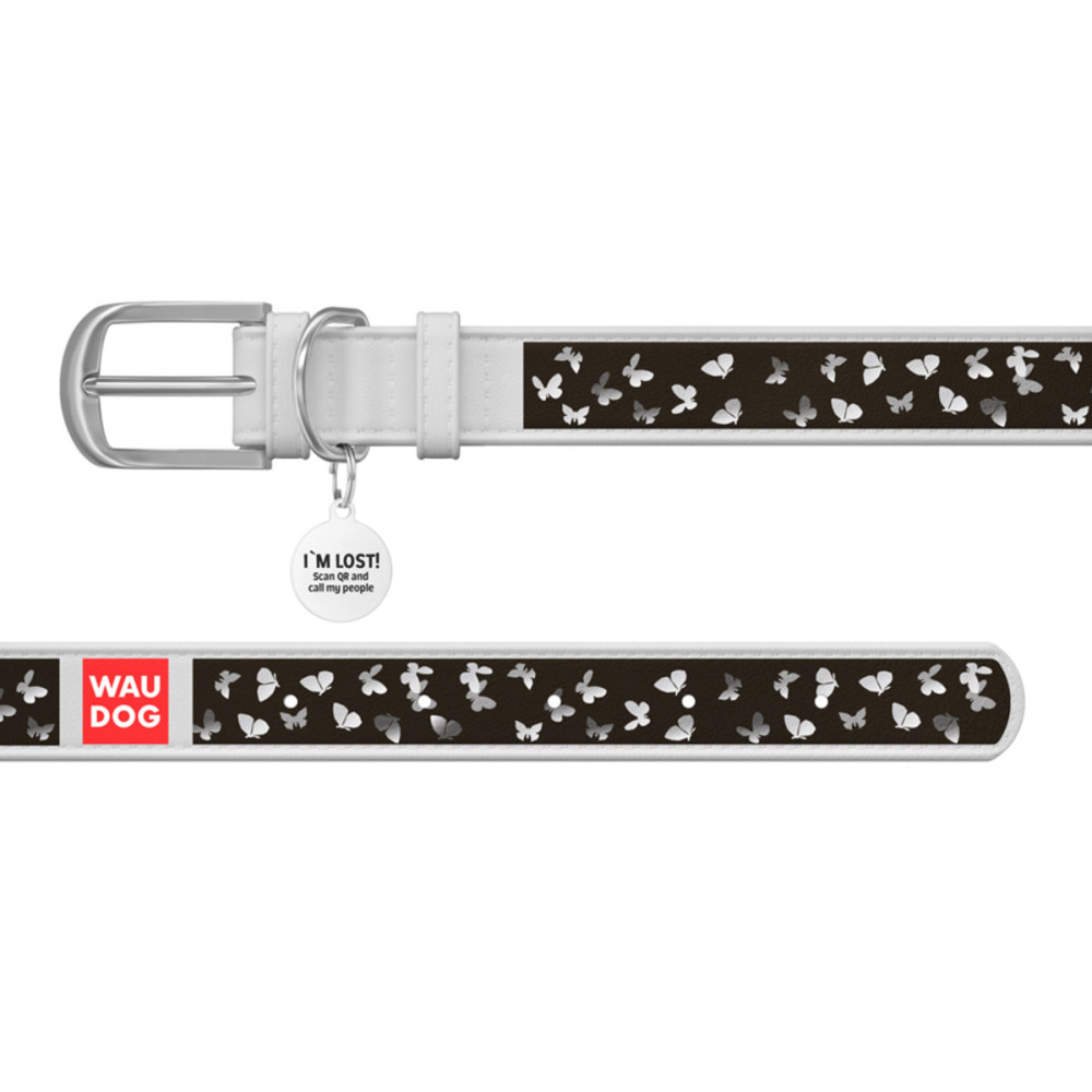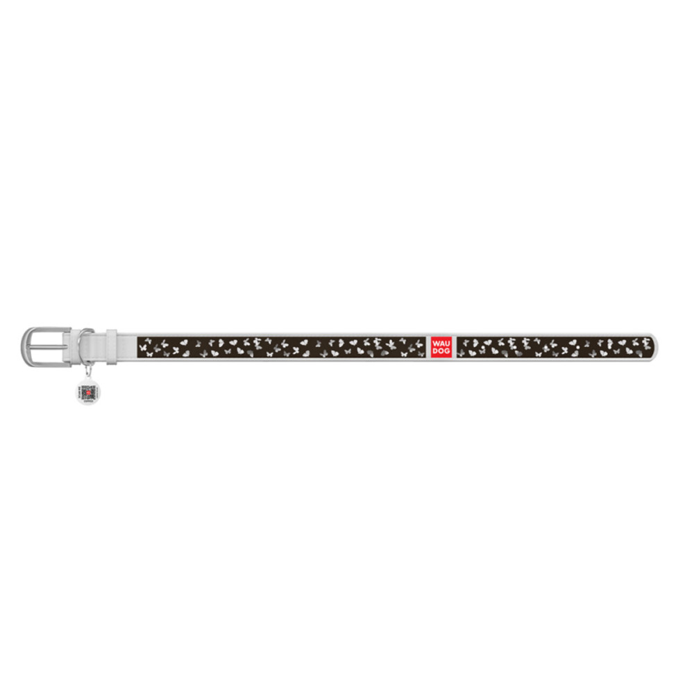 Кожаный белый ошейник для собак WAUDOG Design с рисунком "Бабочки" и металлической пряжкой – это идеальный выбор для собак любых пород.