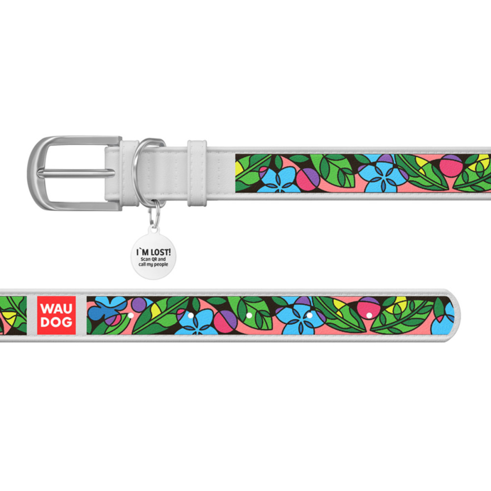 Кожаный белый ошейник для собак WAUDOG Design с рисунком "Эмаль" и металлической пряжкой – это идеальный выбор для собак любых пород.