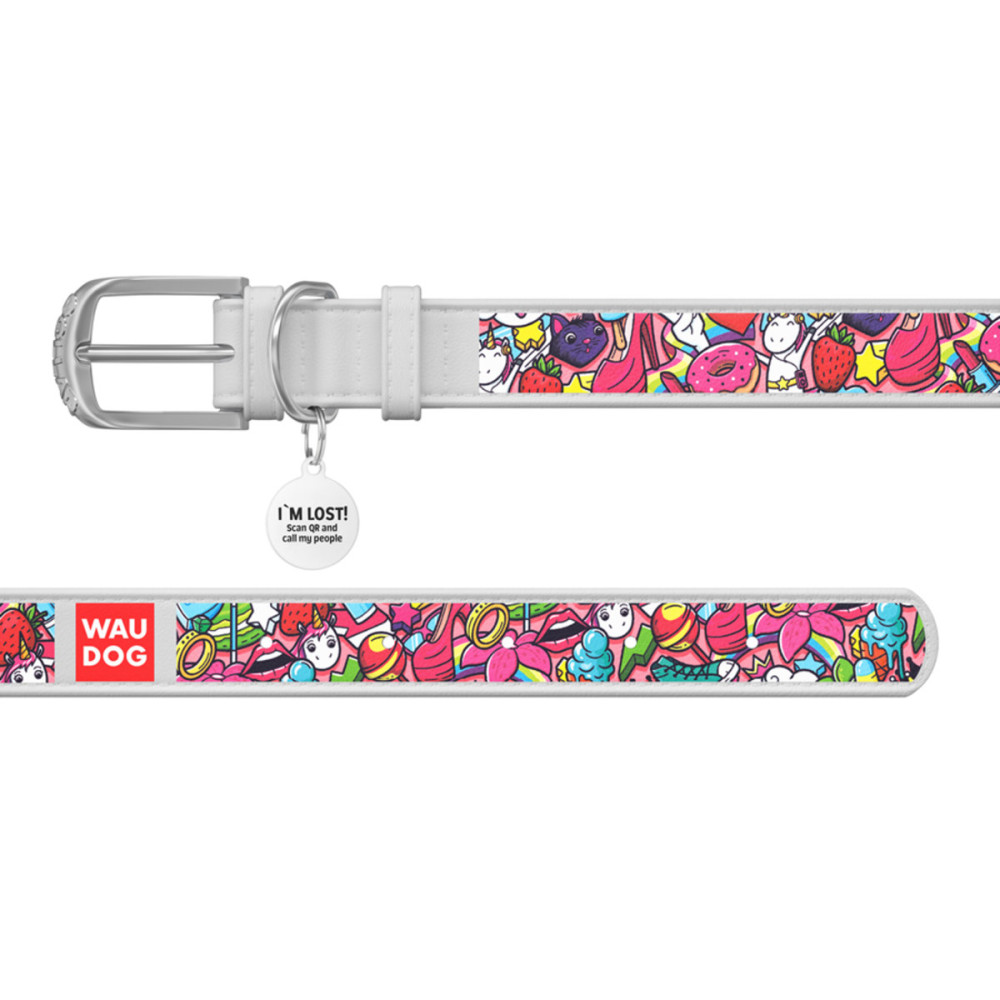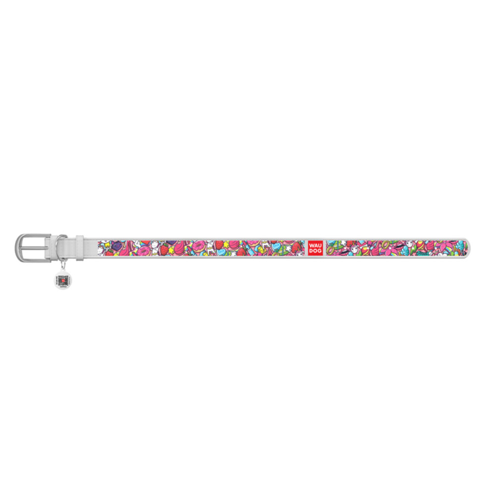 Кожаный белый ошейник для собак WAUDOG Design с рисунком "Фантазия" и металлической пряжкой – это идеальный выбор для собак любых пород.