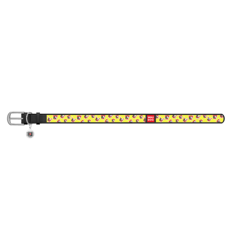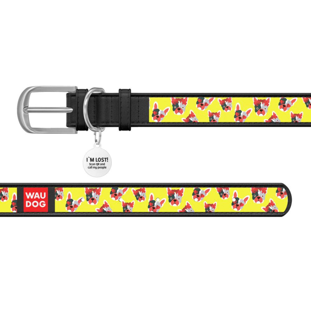 Кожаный чёрный ошейник для собак WAUDOG Design с рисунком "Француз" и металлической пряжкой – это идеальный выбор для собак любых пород.