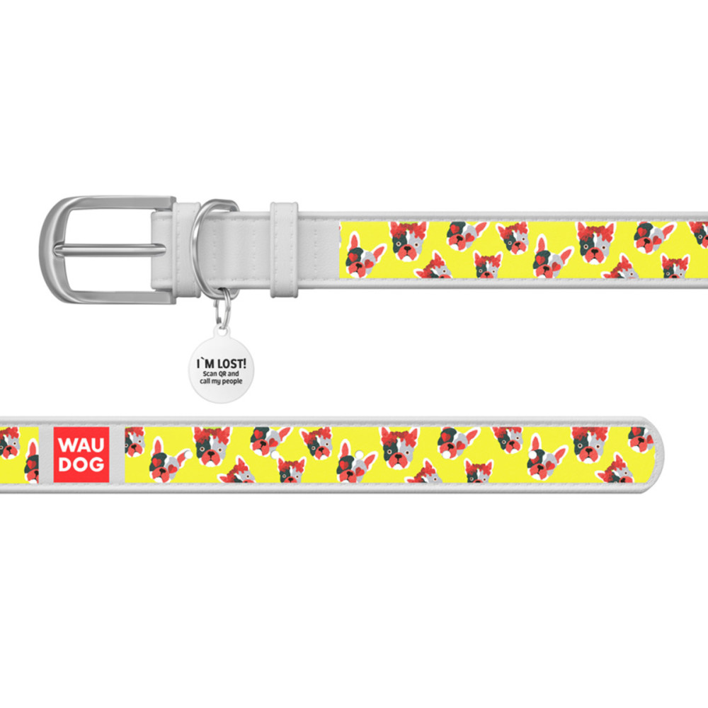 Кожаный белый ошейник для собак WAUDOG Design с рисунком "Француз" и металлической пряжкой – это идеальный выбор для собак любых пород.