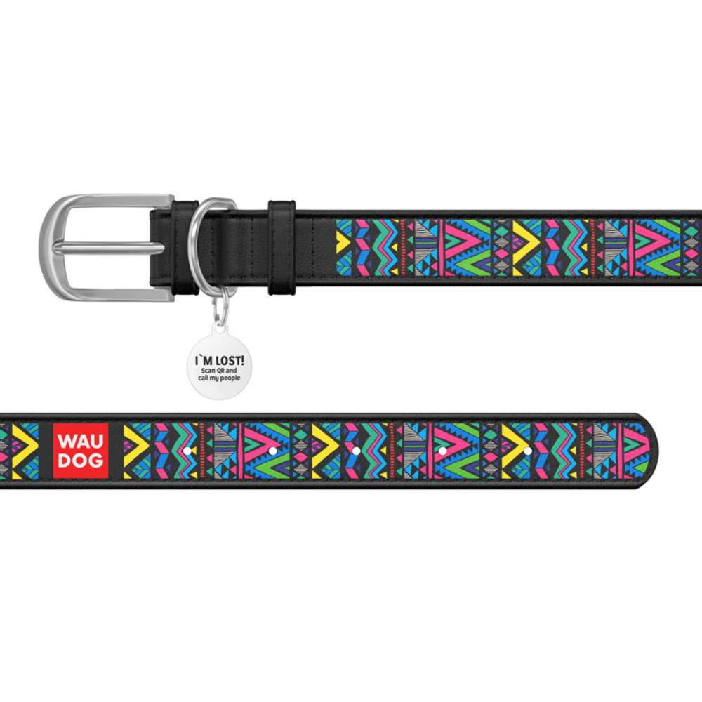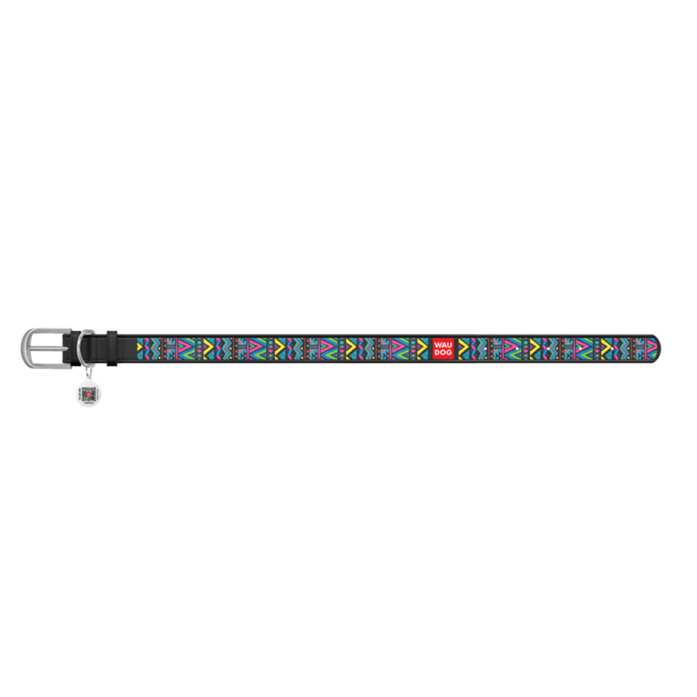 Кожаный чёрный ошейник для собак WAUDOG Design с рисунком "Инди" и металлической пряжкой – это идеальный выбор для собак любых пород.