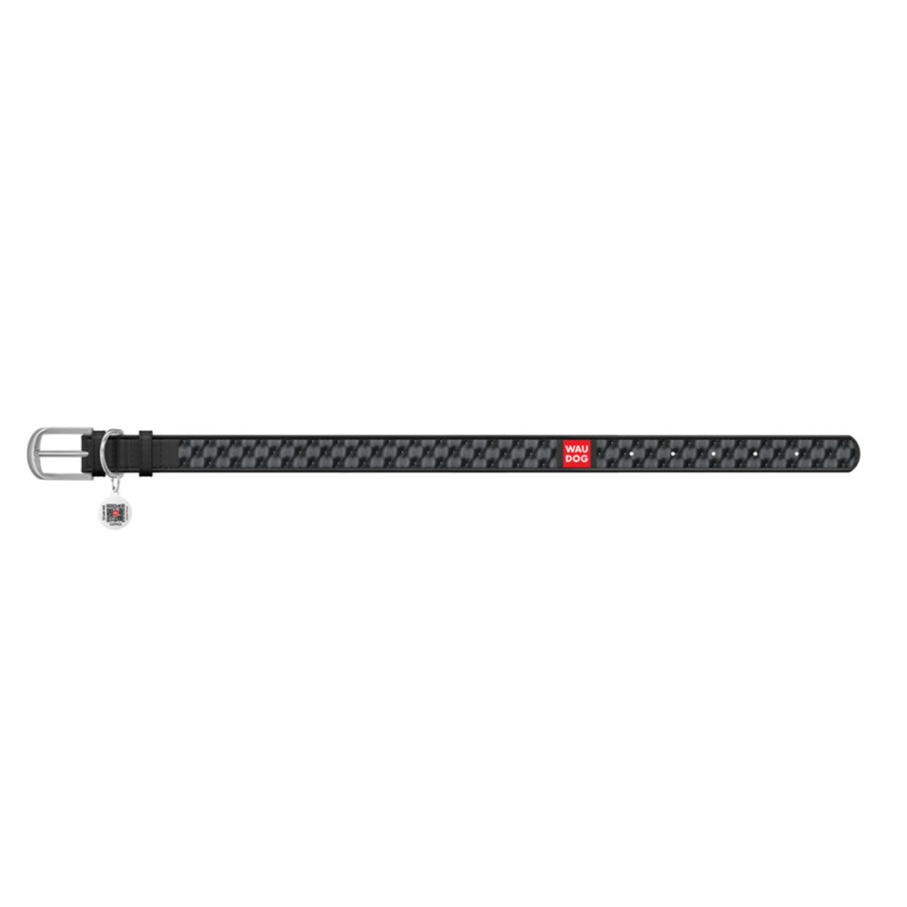 Кожаный чёрный ошейник для собак WAUDOG Design с рисунком "Капитоне" и металлической пряжкой – это идеальный выбор для собак любых пород.