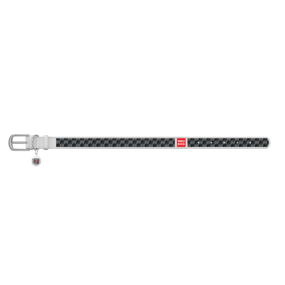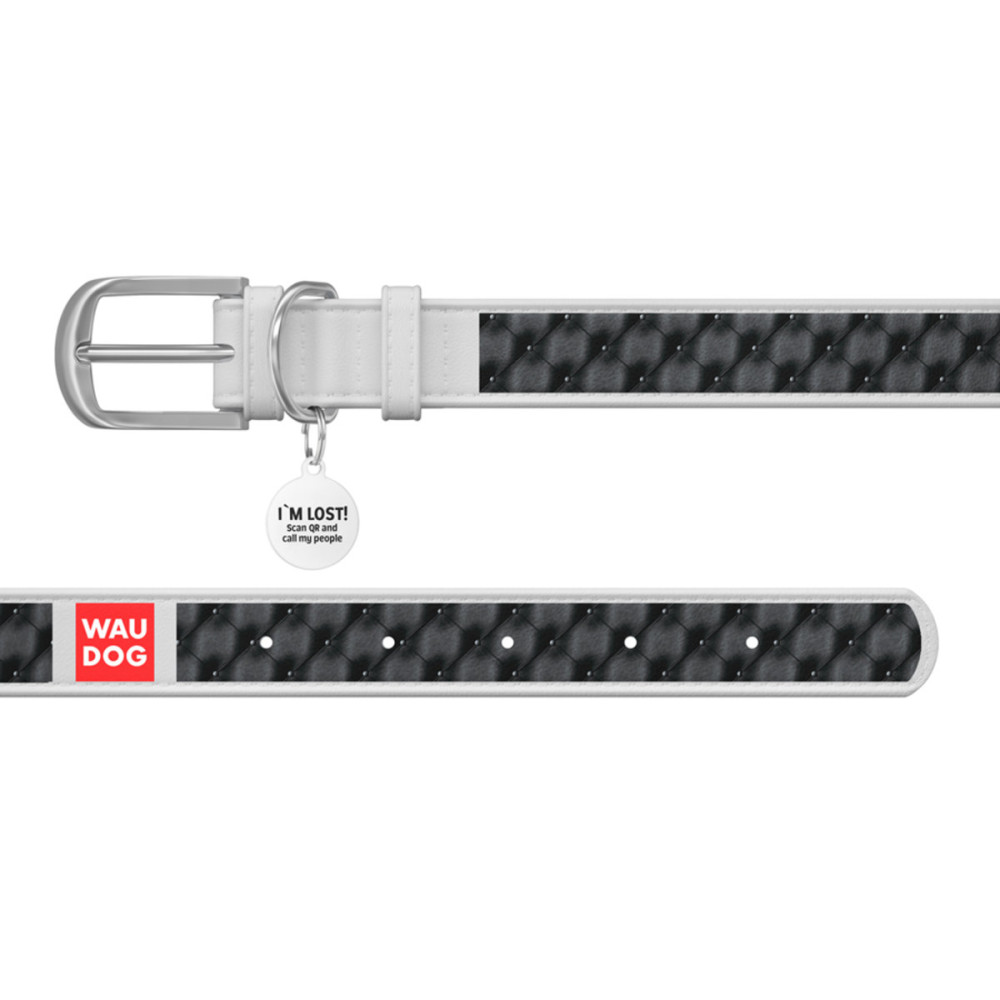 Кожаный белый ошейник для собак WAUDOG Design с рисунком "Капитоне" и металлической пряжкой – это идеальный выбор для собак любых пород.