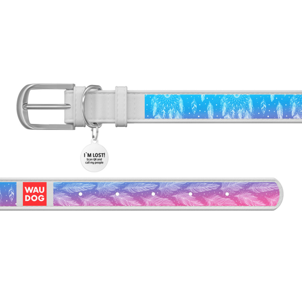 Кожаный белый ошейник для собак WAUDOG Design с рисунком "Ловец снов" и металлической пряжкой – это идеальный выбор для собак любых пород.