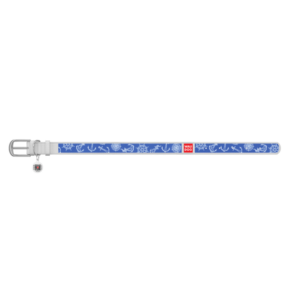 Кожаный белый ошейник для собак WAUDOG Design с рисунком "Морская фантазия" и металлической пряжкой – это идеальный выбор для собак любых пород.