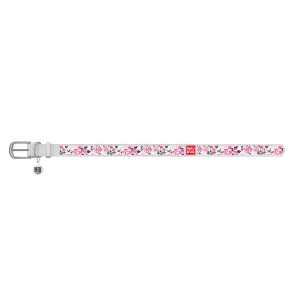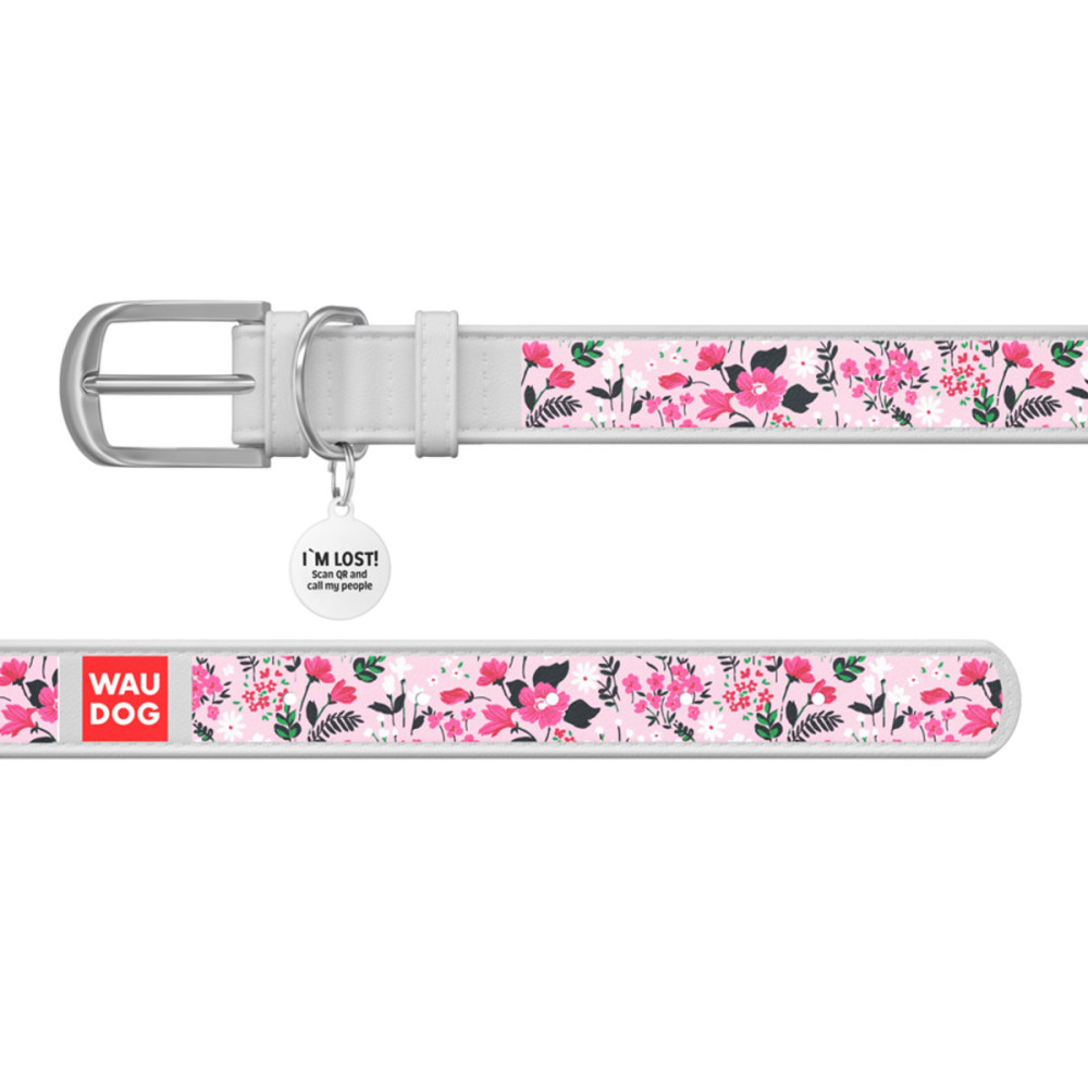 Кожаный белый ошейник для собак WAUDOG Design с рисунком "Нежность" и металлической пряжкой – это идеальный выбор для собак любых пород.
