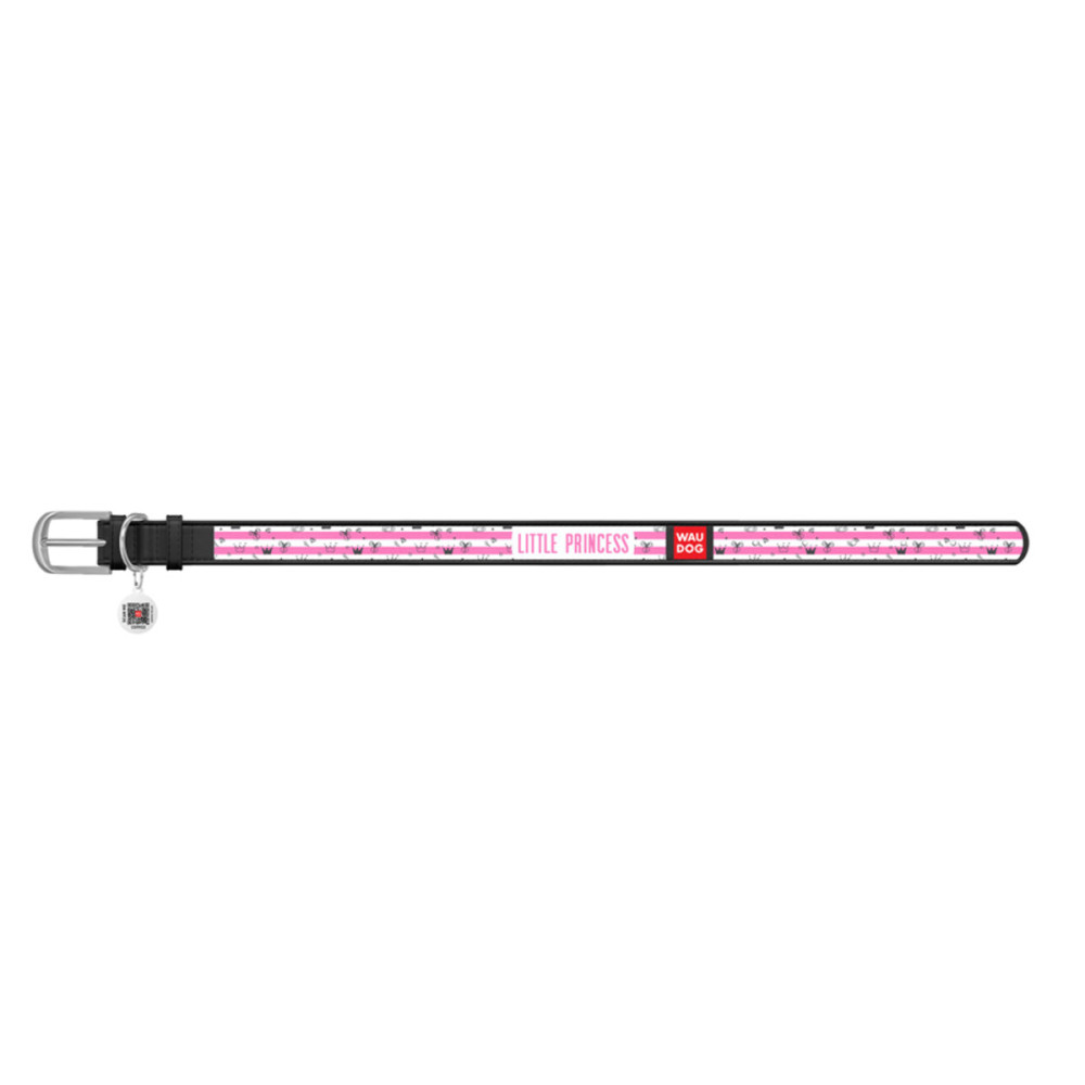 Кожаный чёрный ошейник для собак WAUDOG Design с рисунком "Принцесса" и металлической пряжкой – это идеальный выбор для собак любых пород.