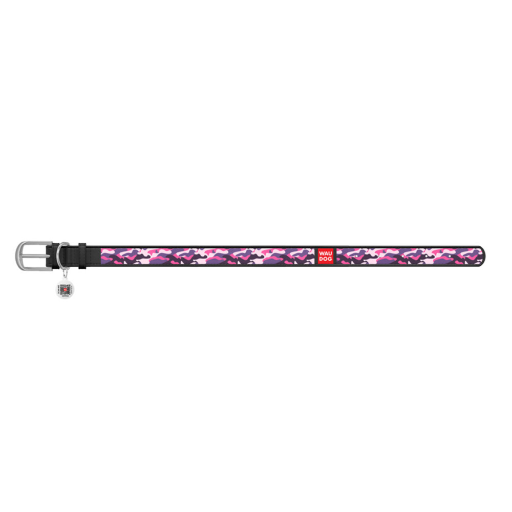 Кожаный чёрный ошейник для собак WAUDOG Design с рисунком "Розовый камо" и металлической пряжкой – это идеальный выбор для собак любых пород.
