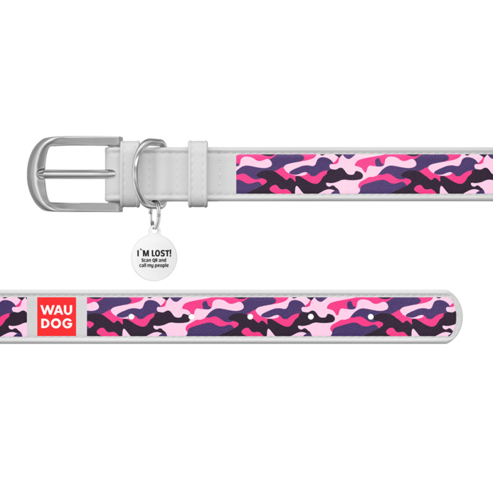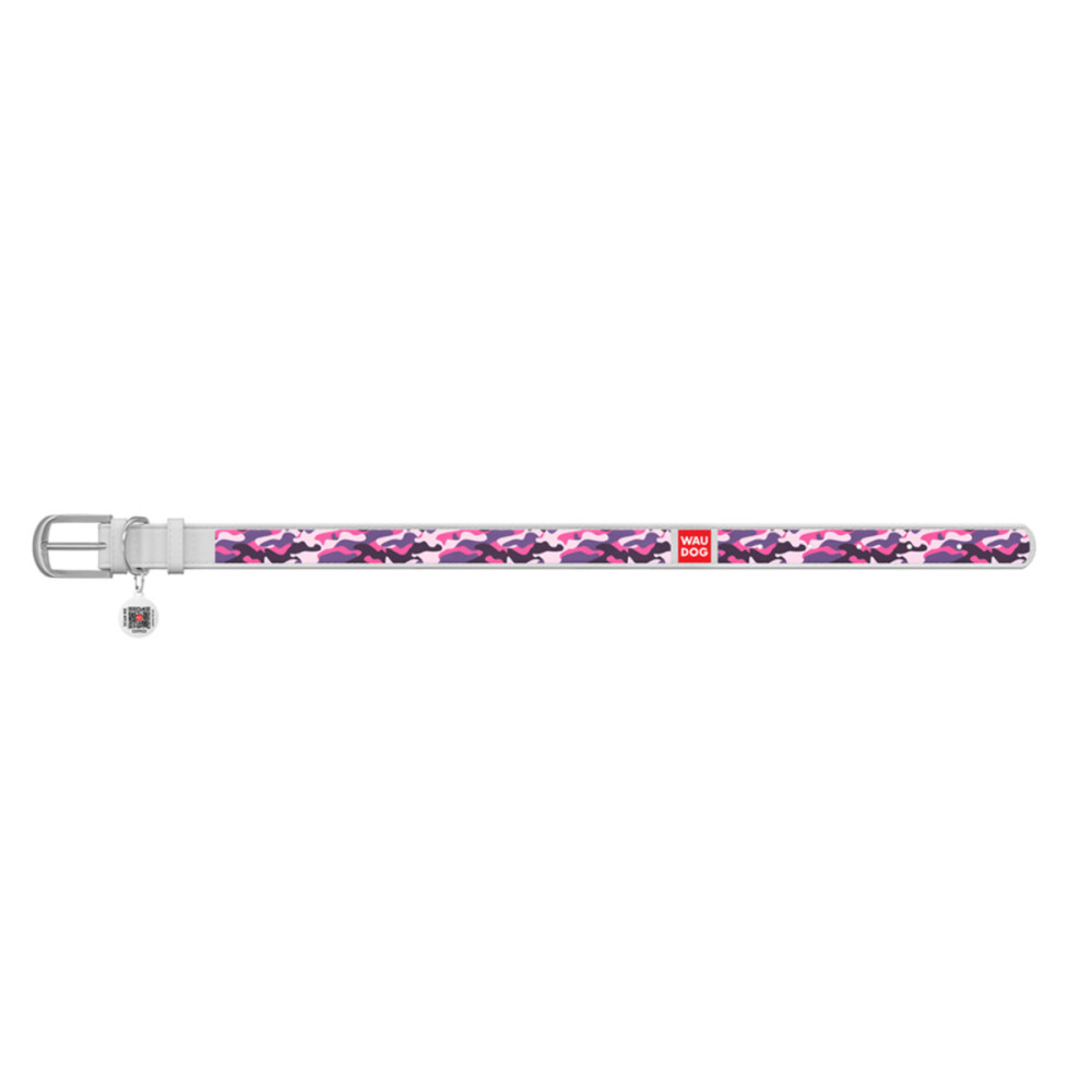 Кожаный ошейник для собак WAUDOG Design с рисунком "Розовый камо" и металлической пряжкой – это идеальный выбор для собак любых пород.