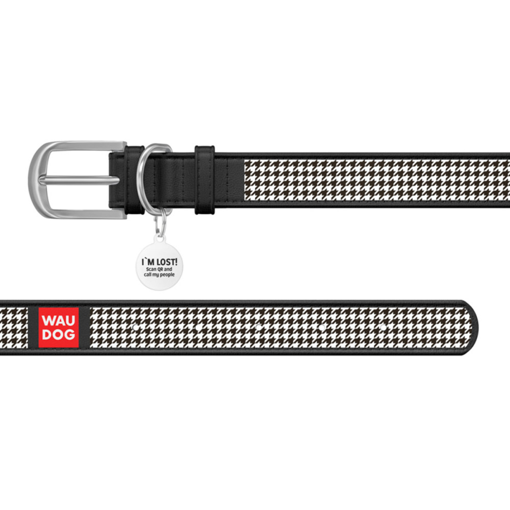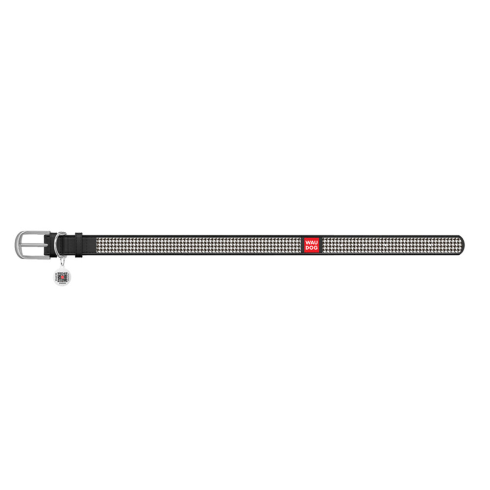 Кожаный чёрный ошейник для собак WAUDOG Design с рисунком "Шанель" и металлической пряжкой – это идеальный выбор для собак любых пород.