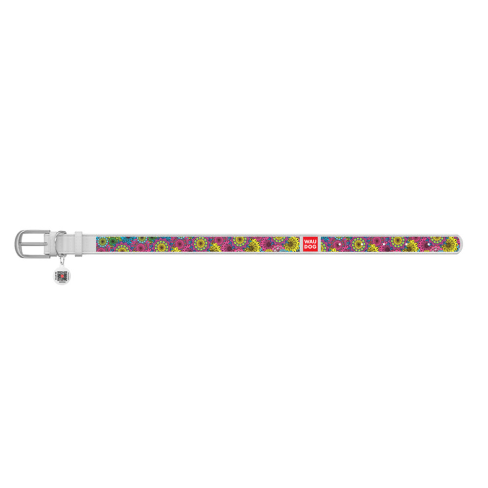 Кожаный белый ошейник для собак WAUDOG Design с рисунком "Весна" и металлической пряжкой – это идеальный выбор для собак любых пород.