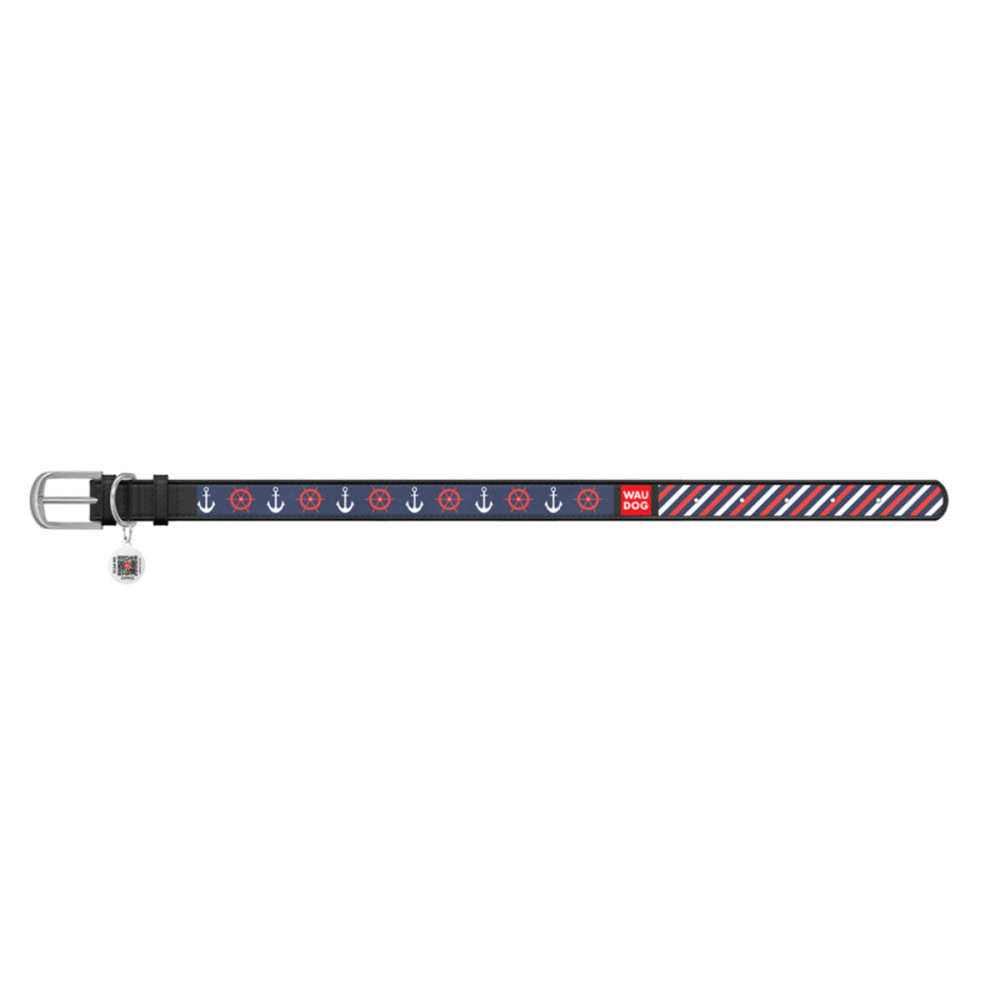 Кожаный чёрный ошейник для собак WAUDOG Design с рисунком "Якоря 2" и металлической пряжкой – это идеальный выбор для собак любых пород.