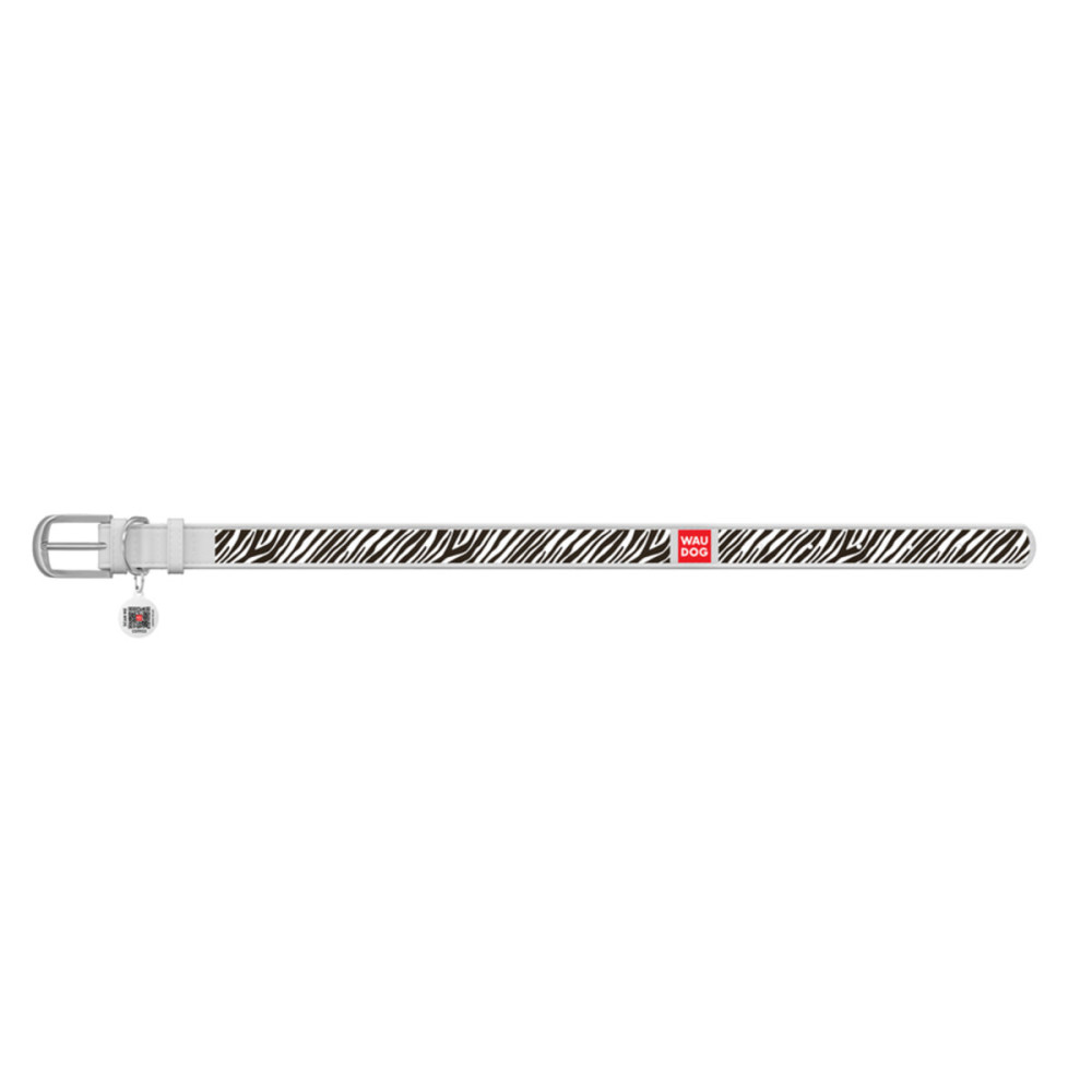 Кожаный белый ошейник для собак WAUDOG Design с рисунком "Зебра" и металлической пряжкой – это идеальный выбор для собак любых пород.