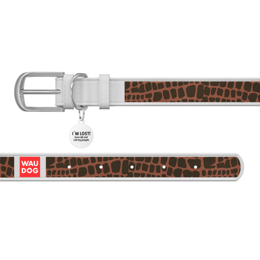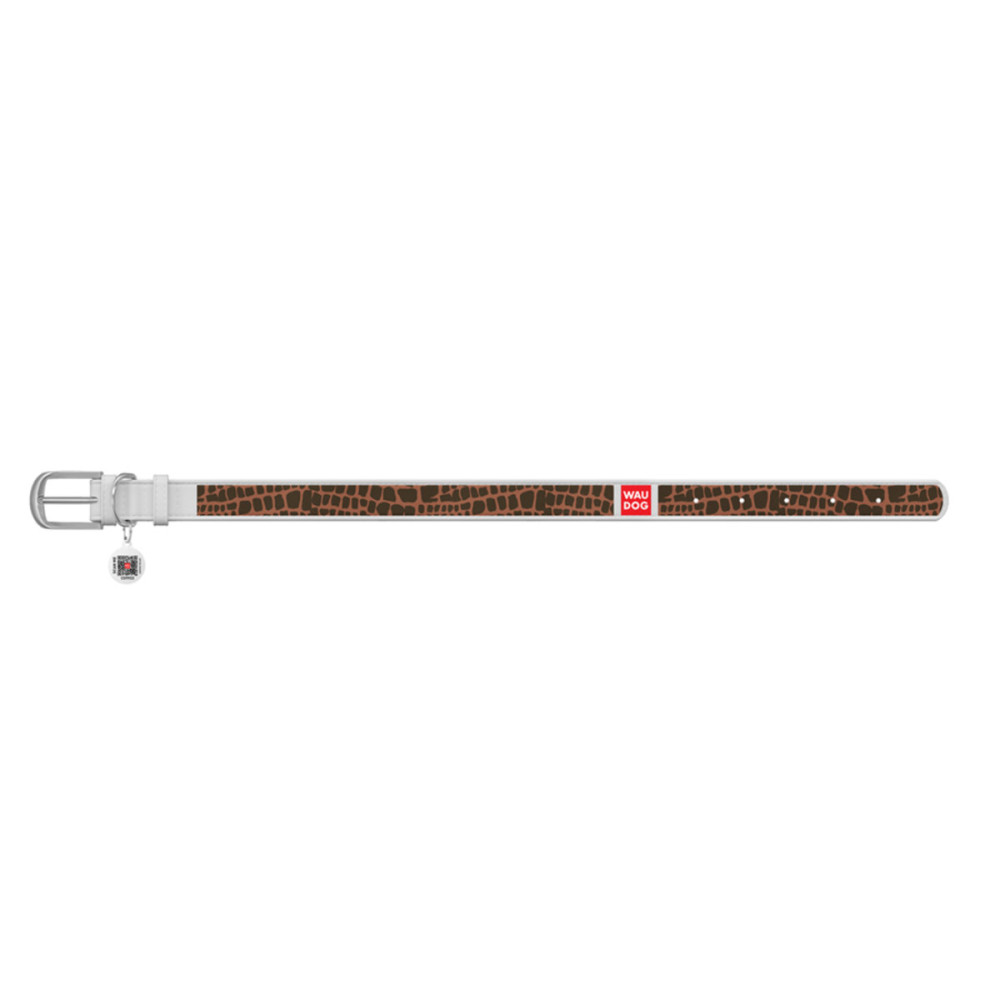 Кожаный белый ошейник для собак WAUDOG Design с рисунком "Жираф" и металлической пряжкой – это идеальный выбор для собак любых пород.