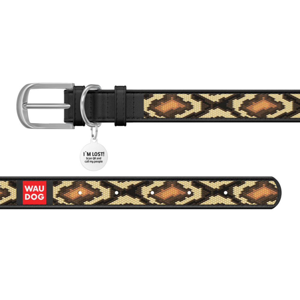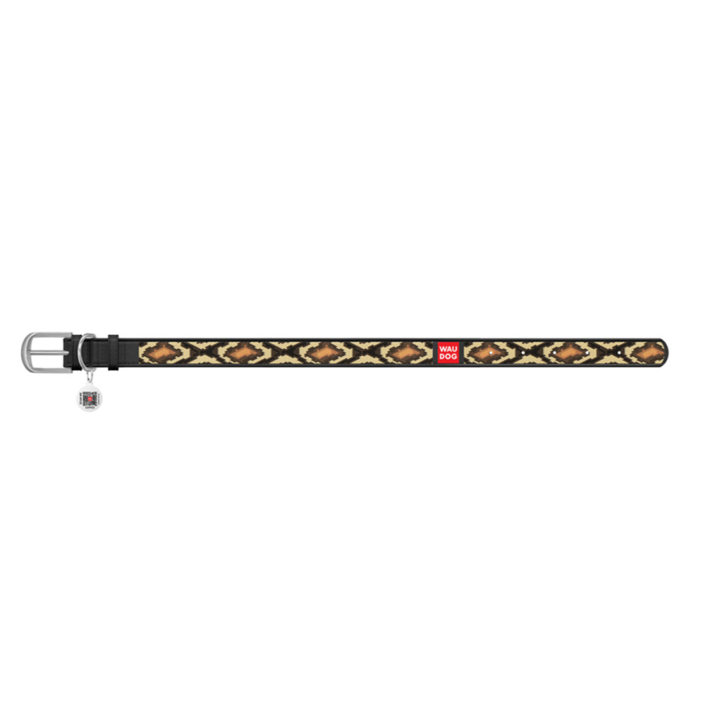 Кожаный чёрный ошейник для собак WAUDOG Design с рисунком "Абстракция" и металлической пряжкой – это идеальный выбор для собак любых пород.