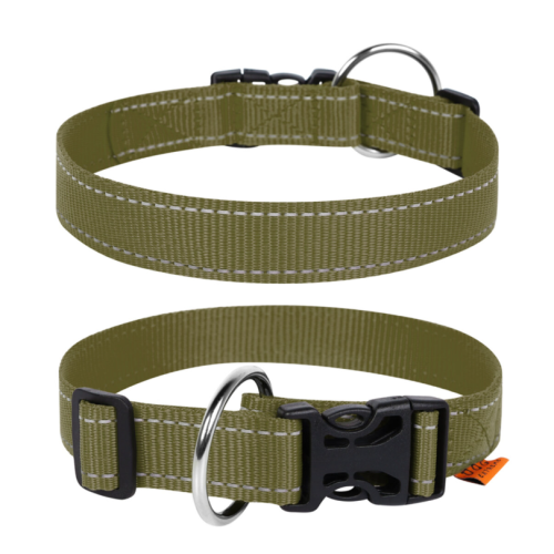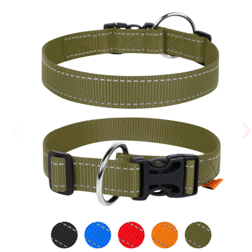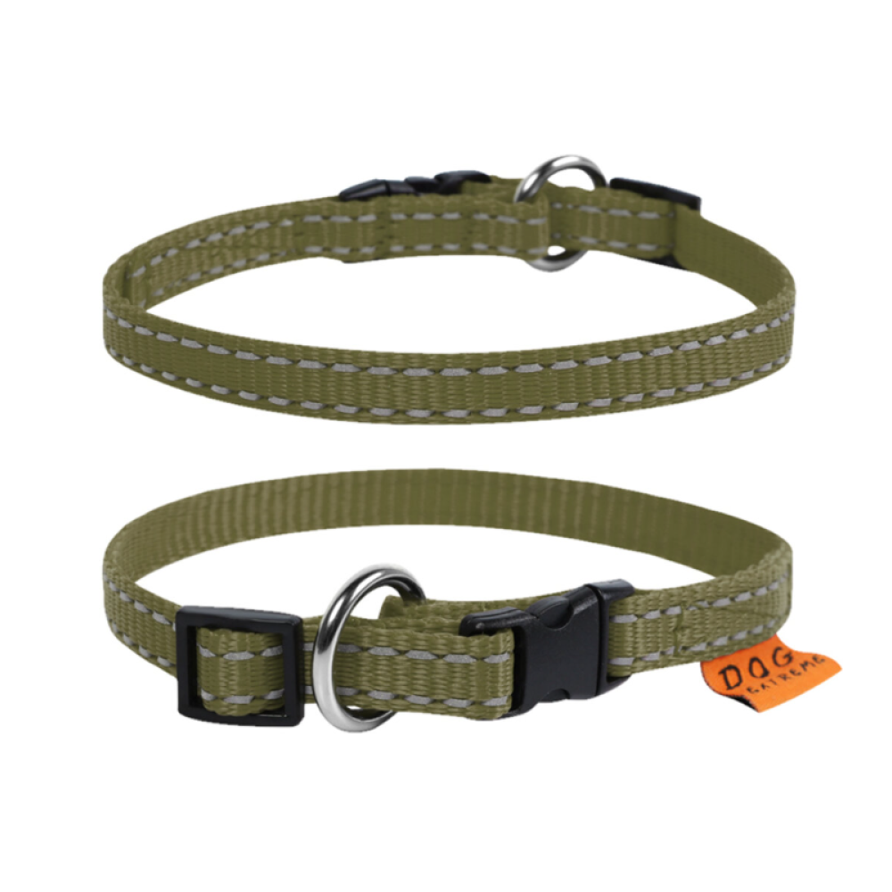 Регулируемый ошейник для собак Dog Extreme цвета хаки выполнен из прочного износостойкого нейлона. Мягкая и гибкая лента комфортно прилегает к шее и не вызывает раздраженья, позволяя собаке свободно двигаться во время прогулки и игр.