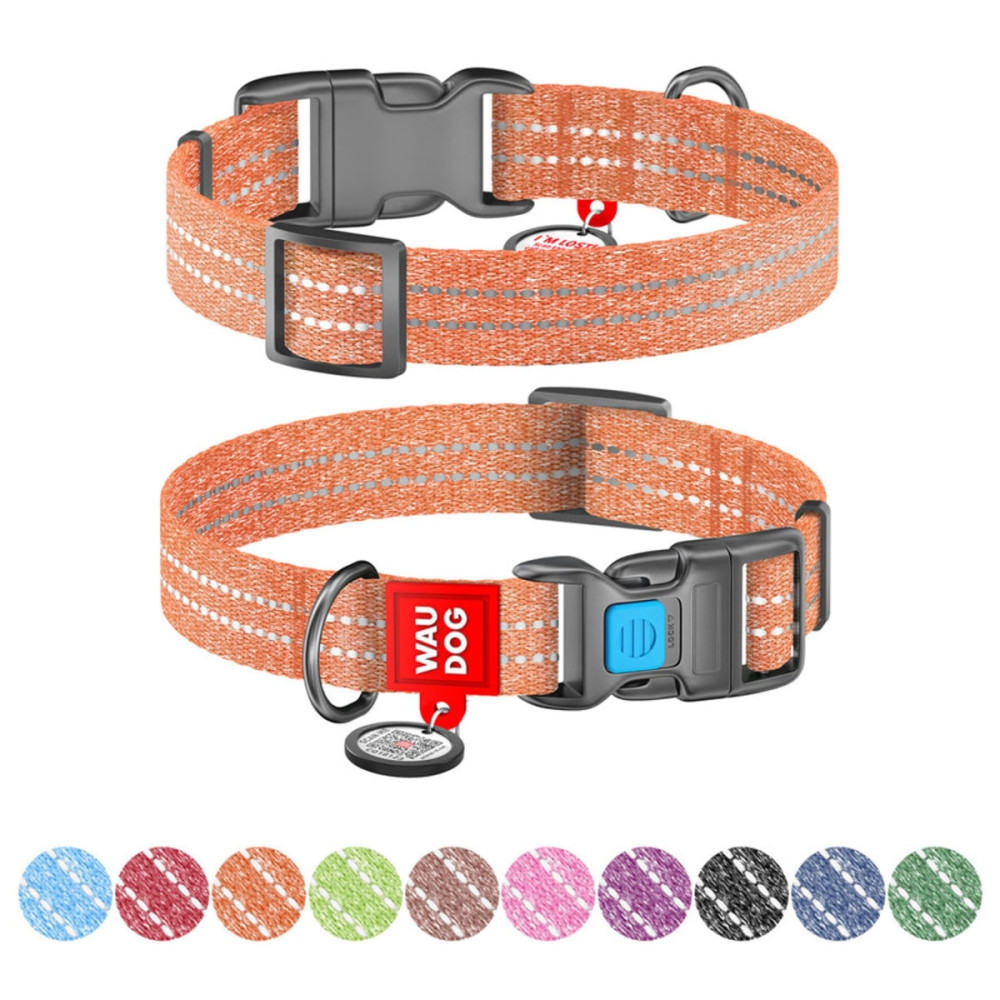 Достоинства ошейника для собак из восстановленного хлопка WAUDOG Re-cotton светоотражающего оранжевого цвета:
