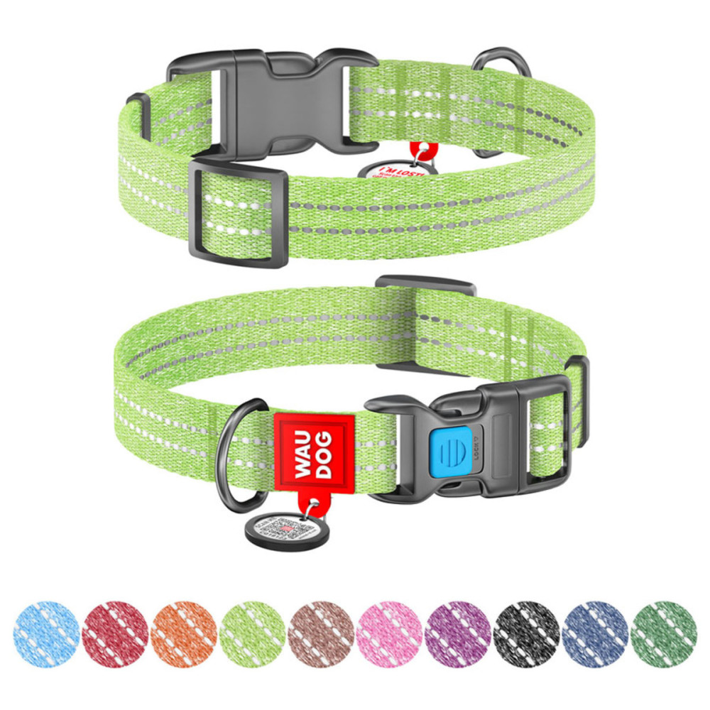 Достоинства ошейника для собак из восстановленного хлопка WAUDOG Re-cotton светоотражающего салатового цвета: