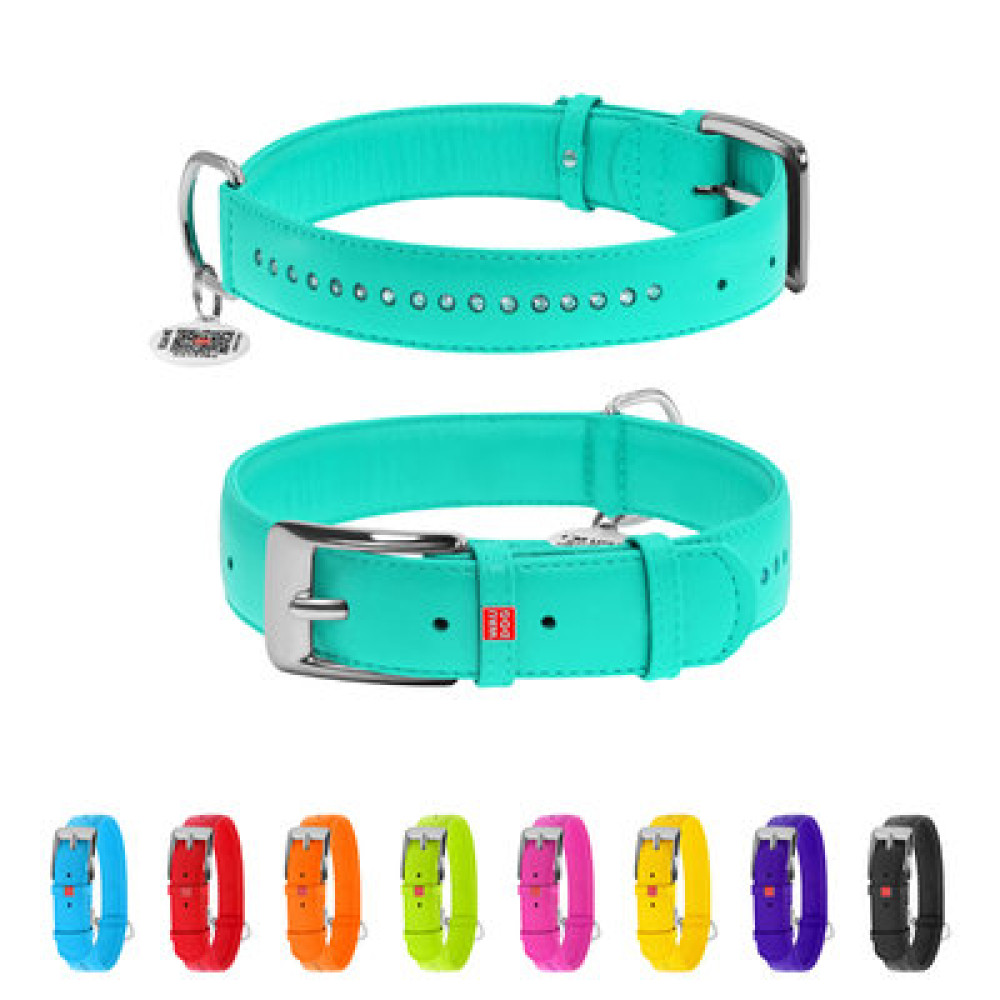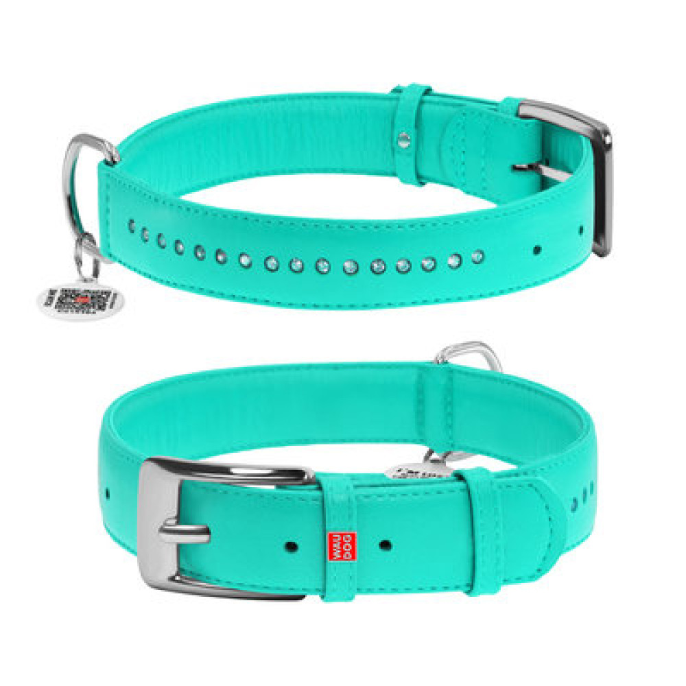 Кожаный ошейник WAUDOG Glamour ментолового оттенка – идеальное сочетание красоты, прочности и современного дизайна.