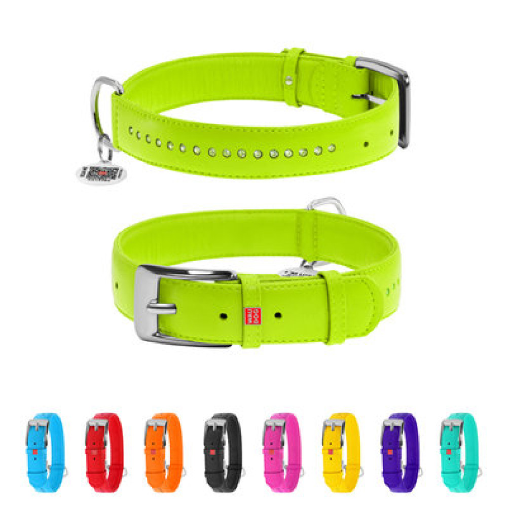 Кожаный ошейник WAUDOG Glamour салатового цвета с QR паспортом – идеальное решение для стильных и активных собак.
