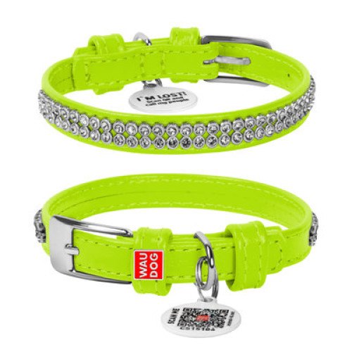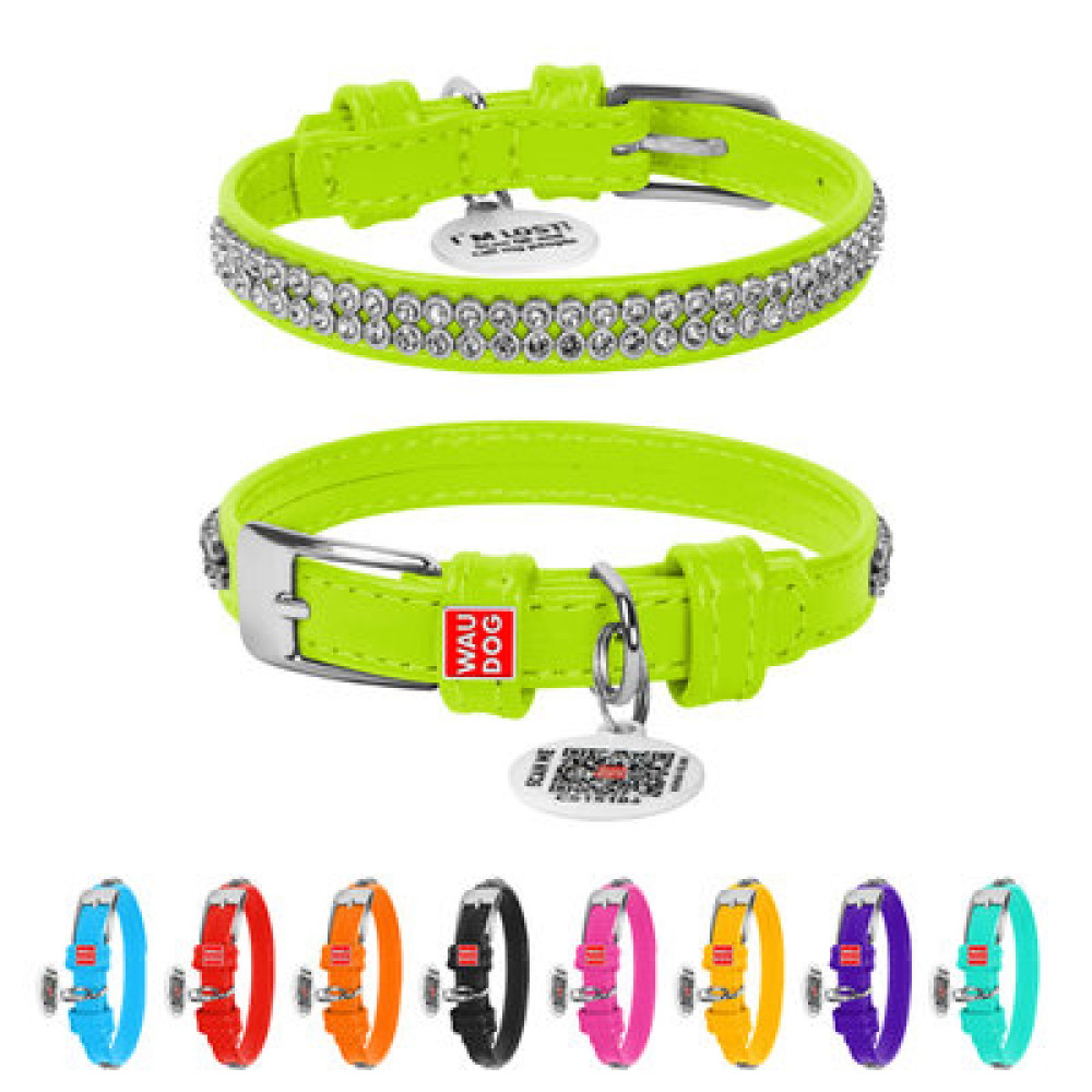 Салатовый ошейник WAUDOG Glamour из серии "Полотно страз" привлекает внимание своим цветом и блеском.