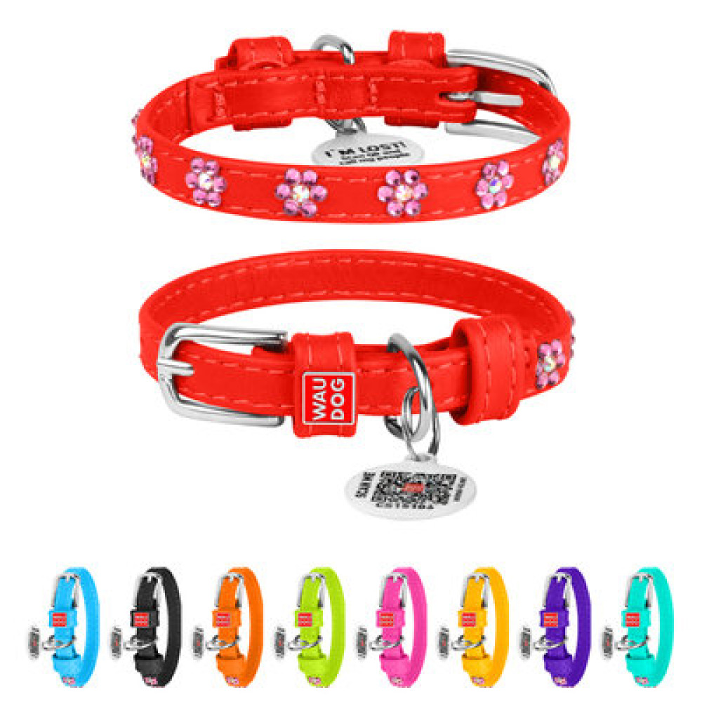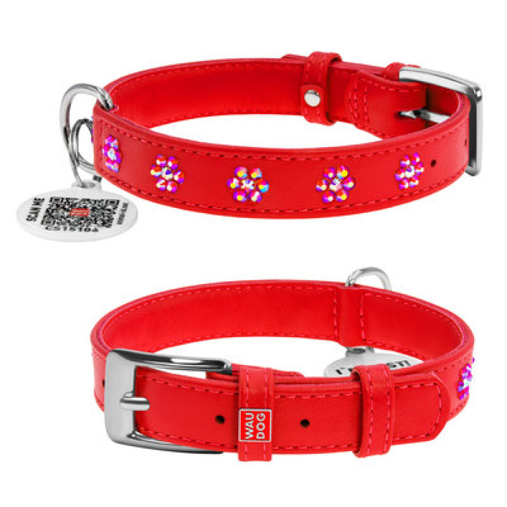 Ошейник WAUDOG Glamour "Цветы" в насыщенном красном цвете – сочетание яркости, надёжности и современного дизайна.