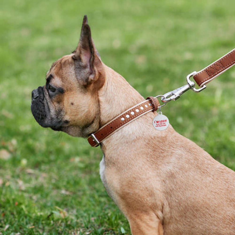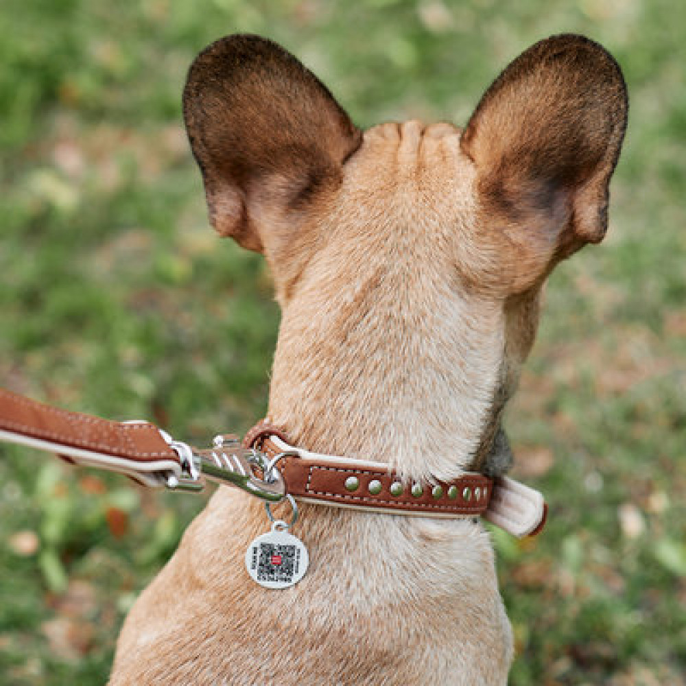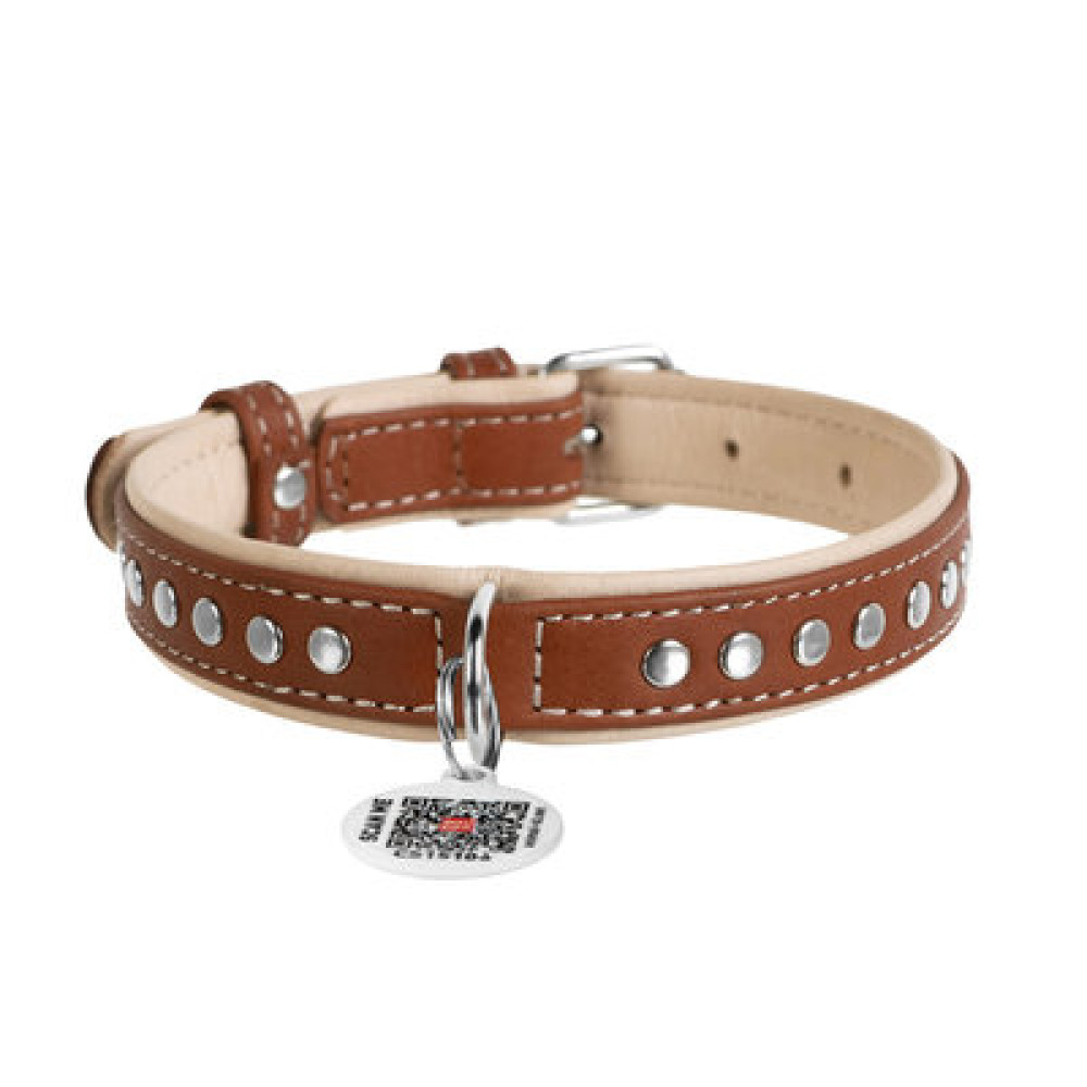 Ошейник для собак WAUDOG Soft кожаный с QR паспортом и металлическими украшениями, коричневый