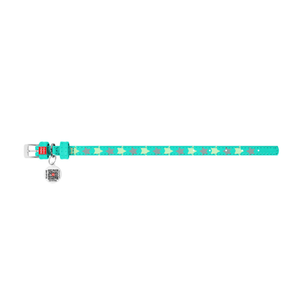 Ошейник для собак кожаный Collar WAUDOG Glamour светонакопительный ментолового цвета с QR паспортом