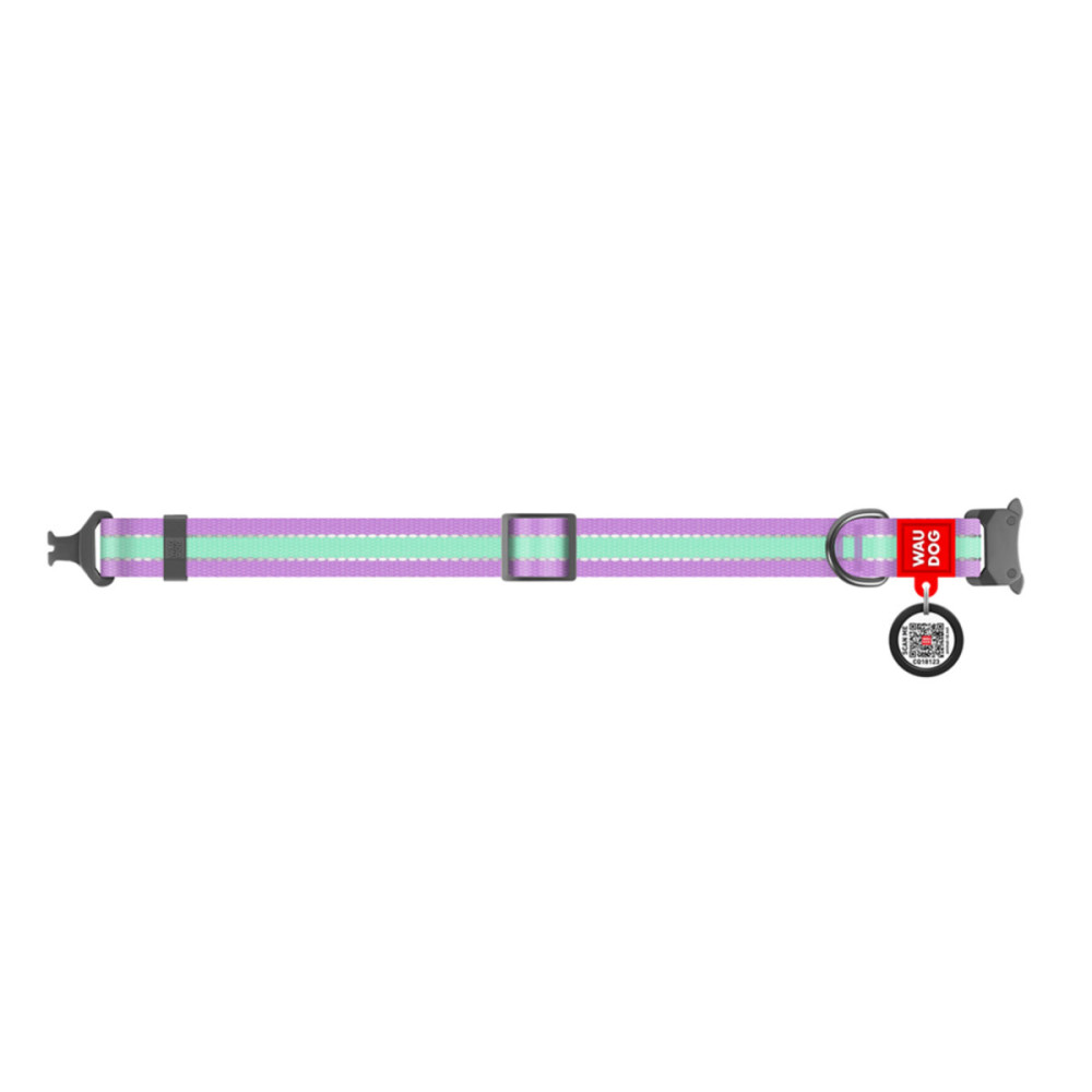 Светонакопительный нейлоновый ошейник для собак WAUDOG Nylon фиолетового цвета, металлический фастекс